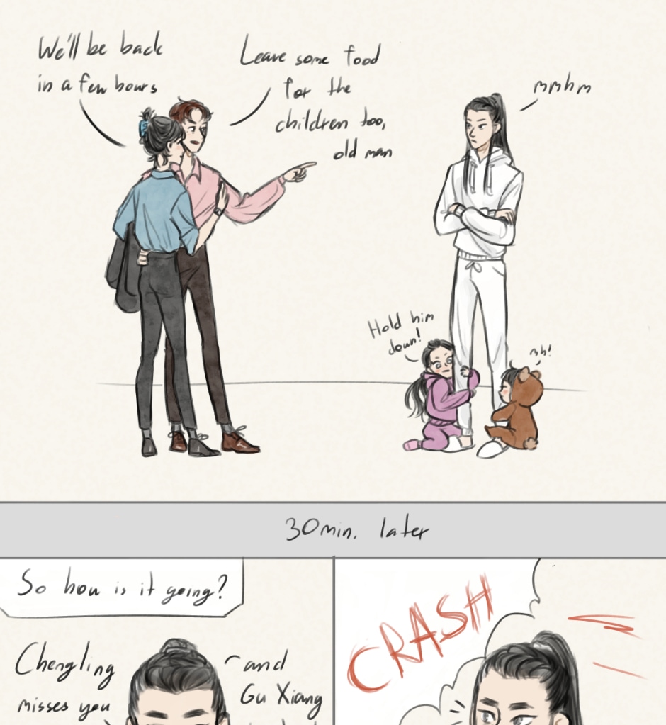 This is going to be a place where I put all of my past and recent small comics of my modern WenZhou family AU. The comics might differ in length and format from time to time, also the style at the beginning is a bit different since I was just learning digital art then. Hope you guys will enjoy this well ^^