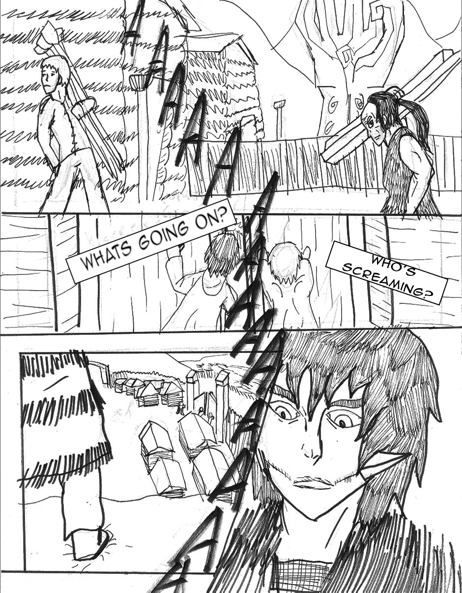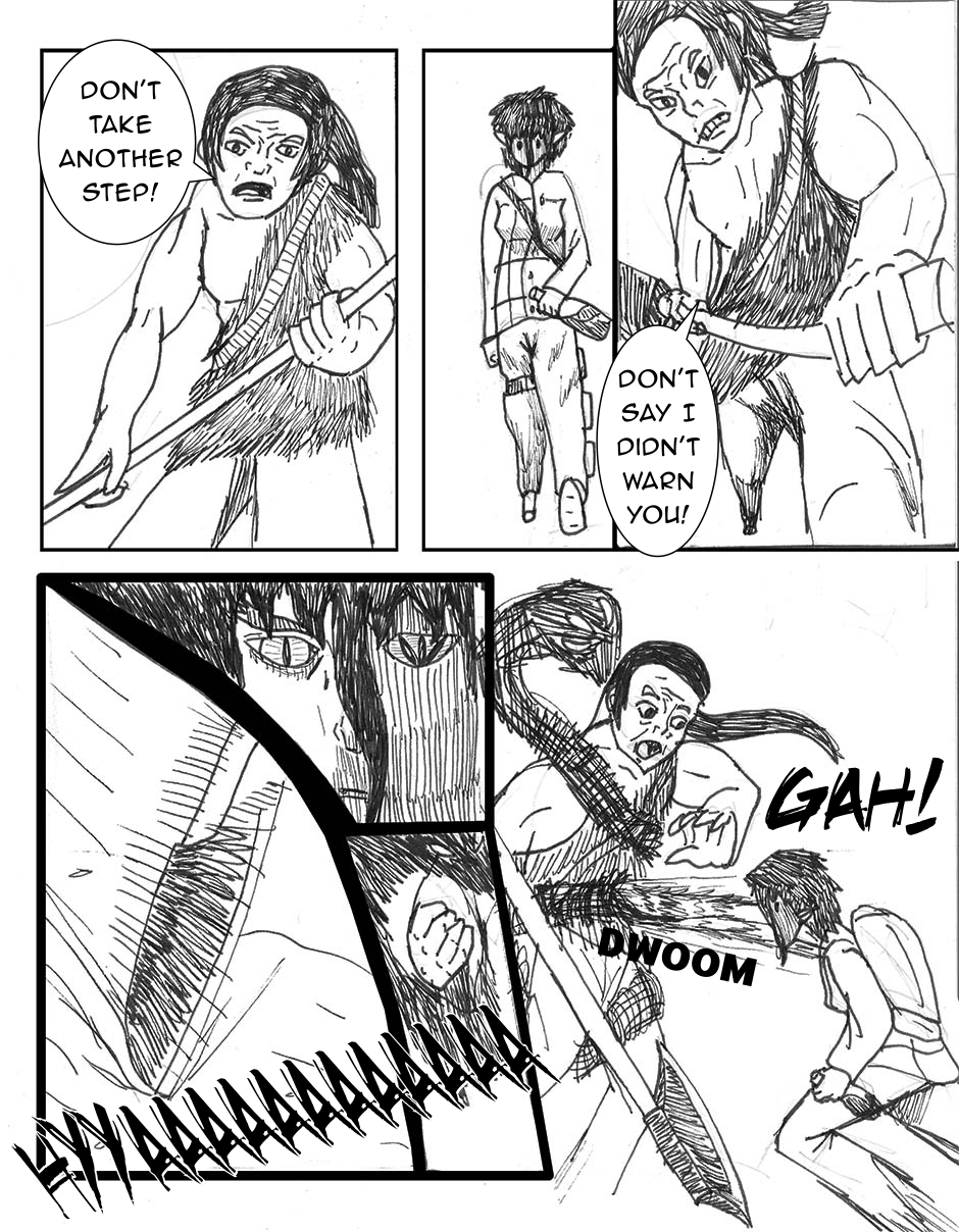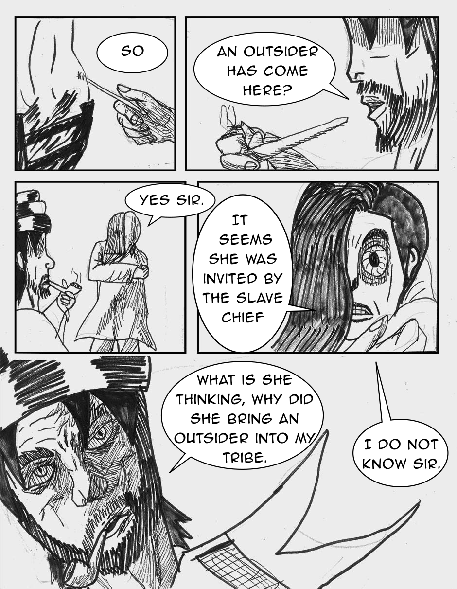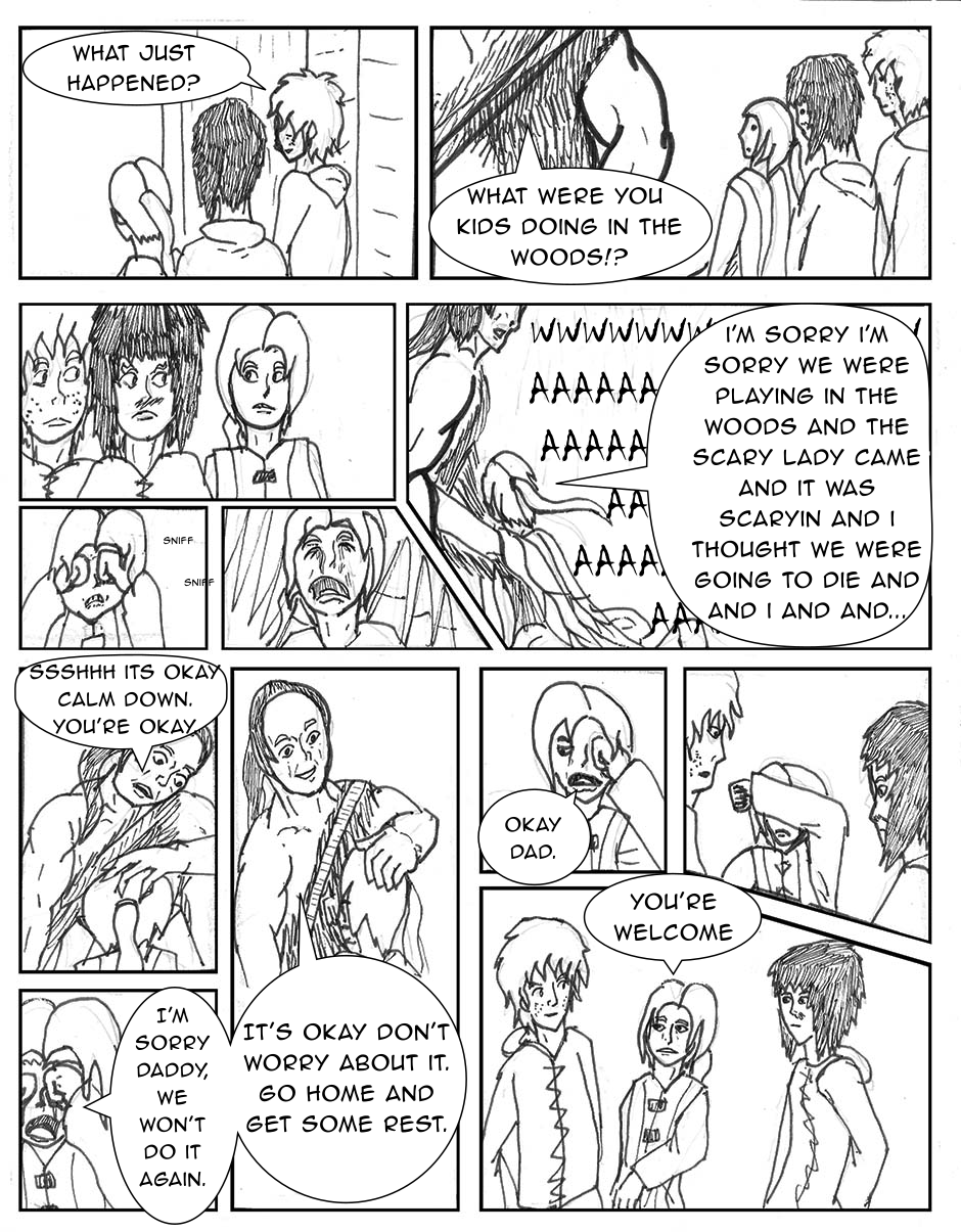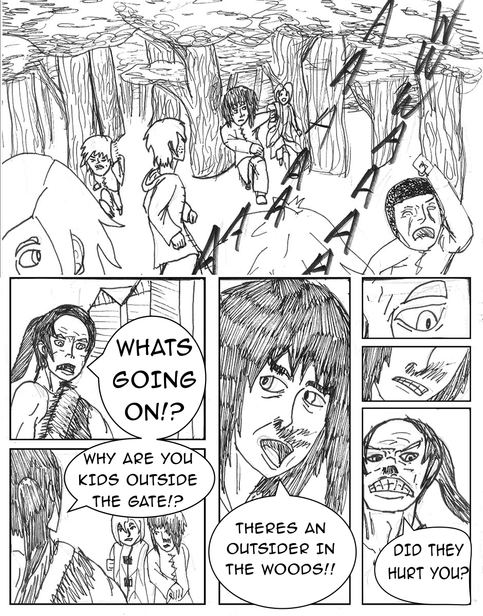 The children are confronted by a mysterious woman in the woods, they run back to the tribe. The tribes guards try to fight off the outsider.