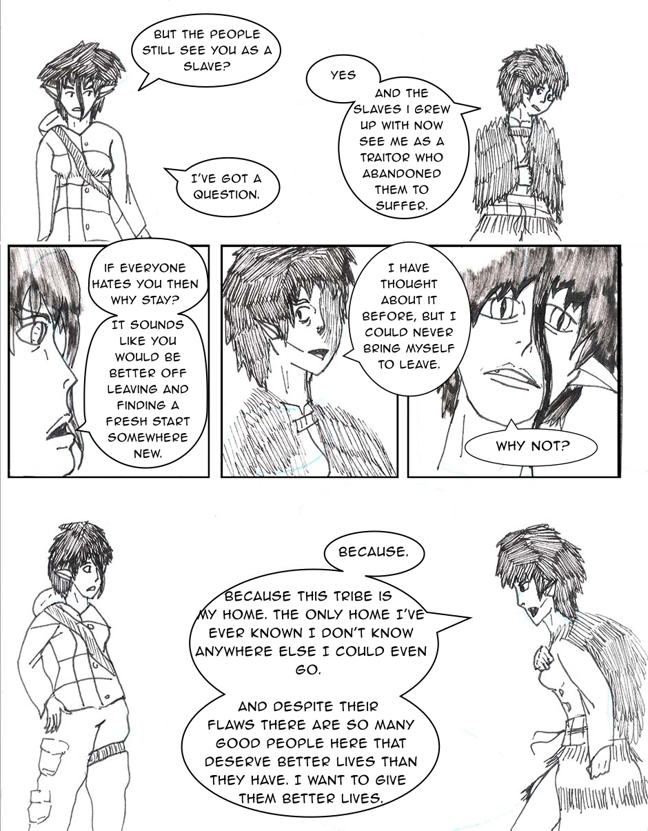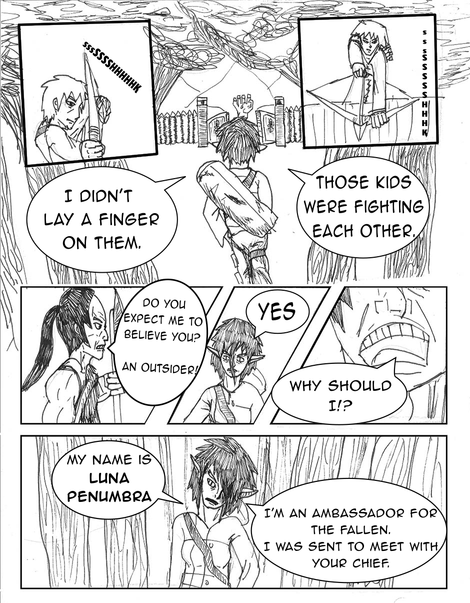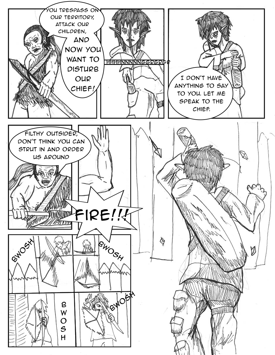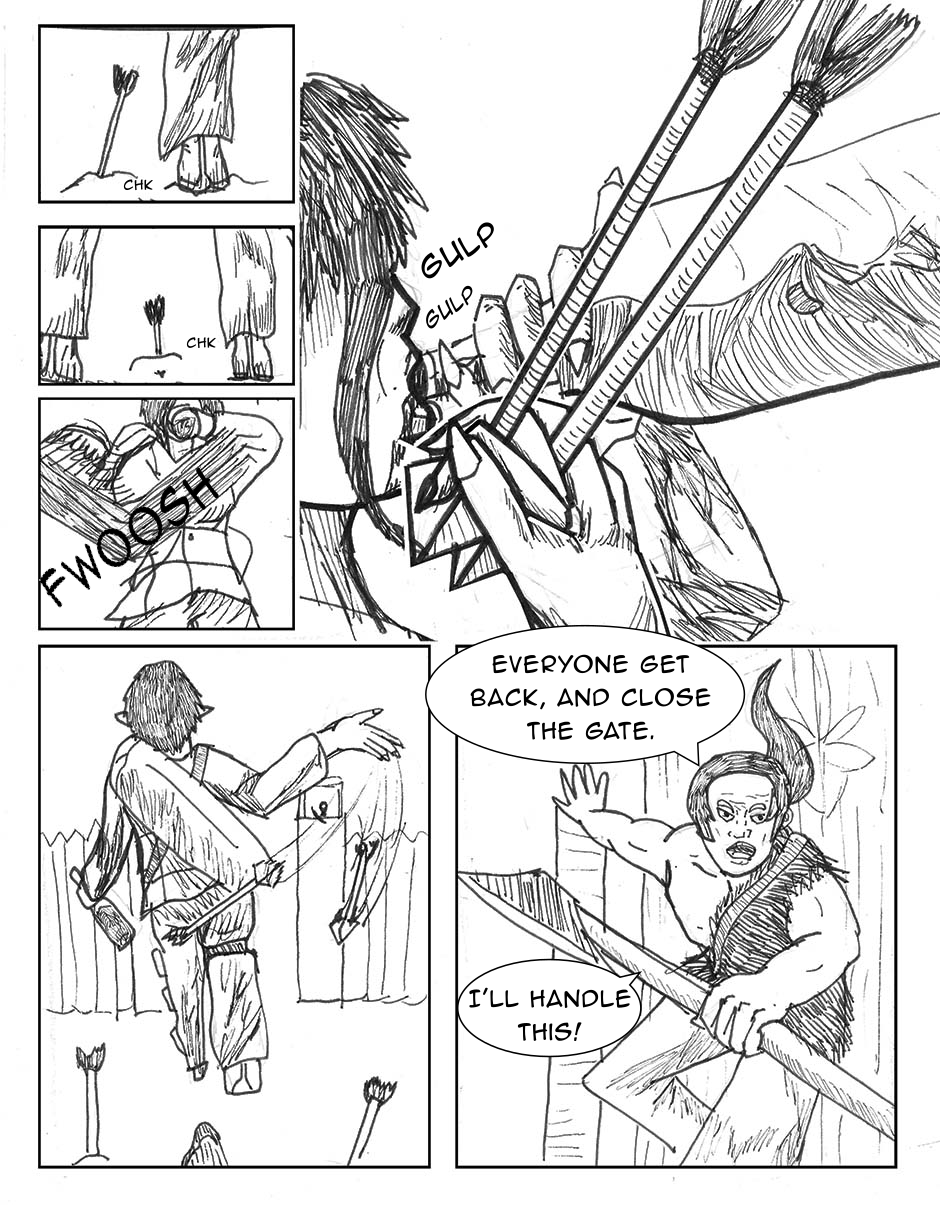 The children are confronted by a mysterious woman in the woods, they run back to the tribe. The tribes guards try to fight off the outsider.
