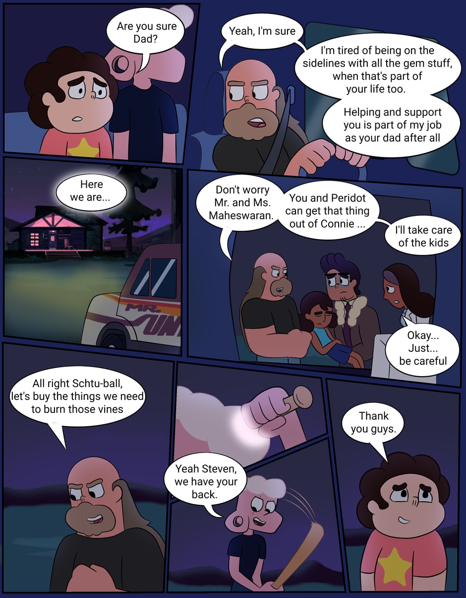 Steven is happy that his dad is supporting him with the gem stuff. Also Lars is basically Steve Harrigton, so I give him a bat.