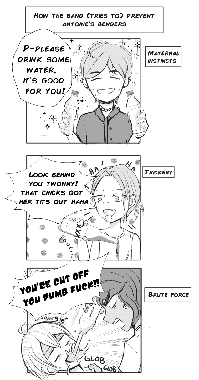 Antoine is a sad gremlin with a bad attitude, after moving in with his cousin Hiro after some unfortunate events, he joins their band Fatal Plus, along with childhood (boy)friends Sunny and Noel.