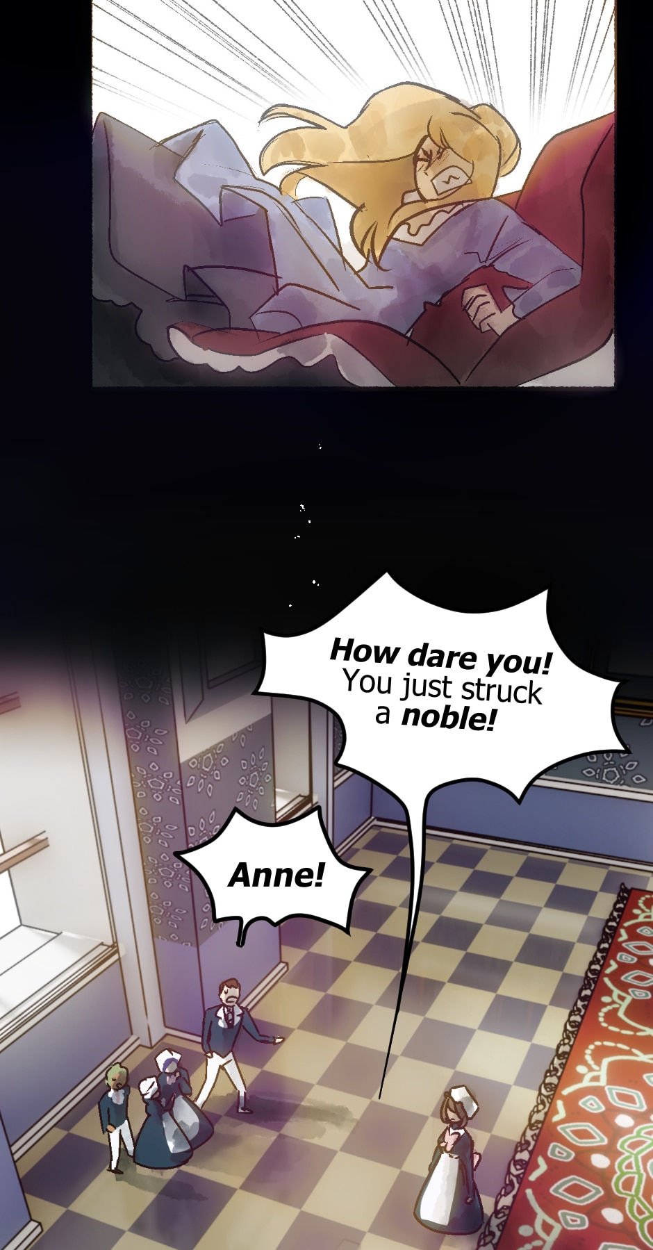 😅 Whew, was afraid of some bad consequences for Anne after that slap. That "noble" lady fell like a sack of potatoes, lol!
