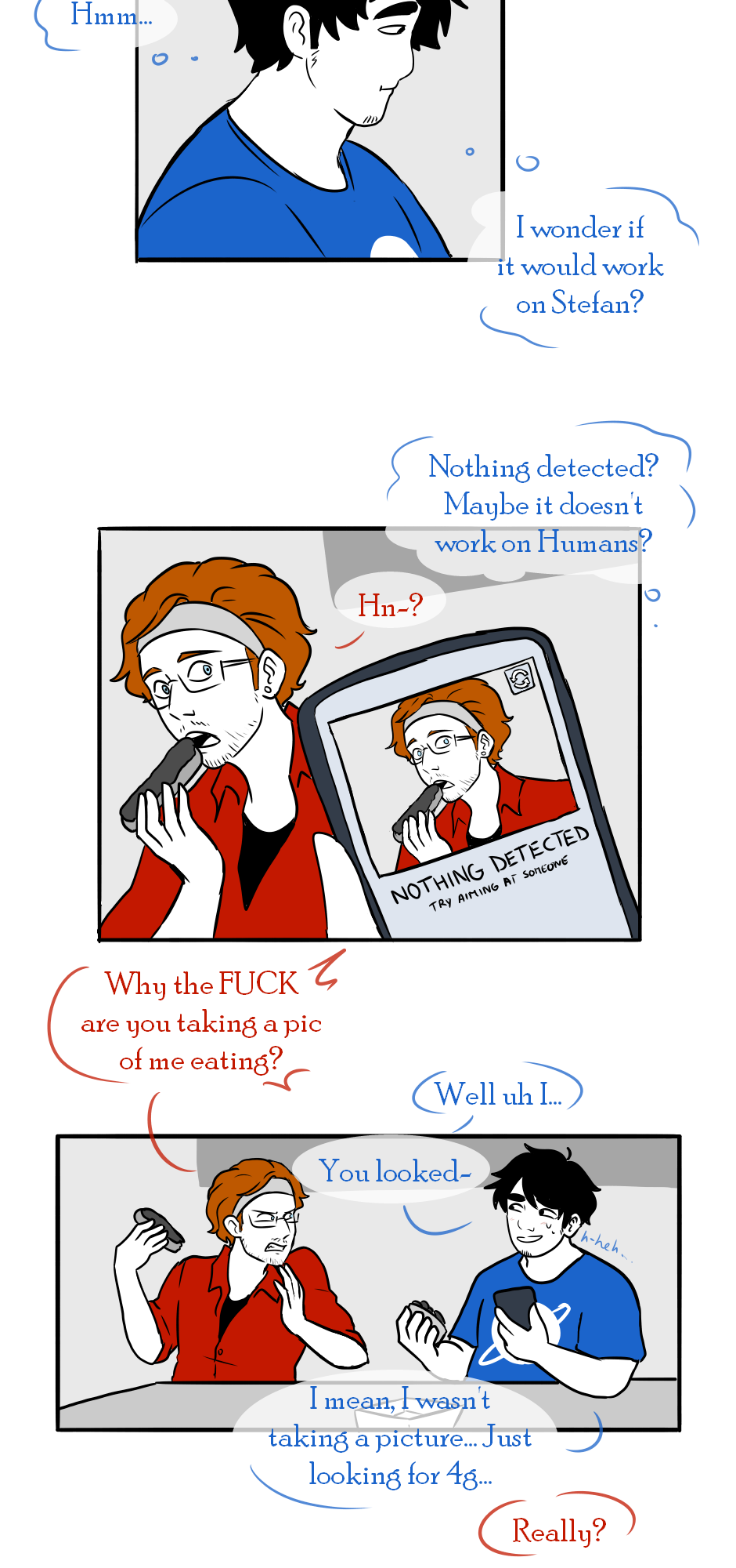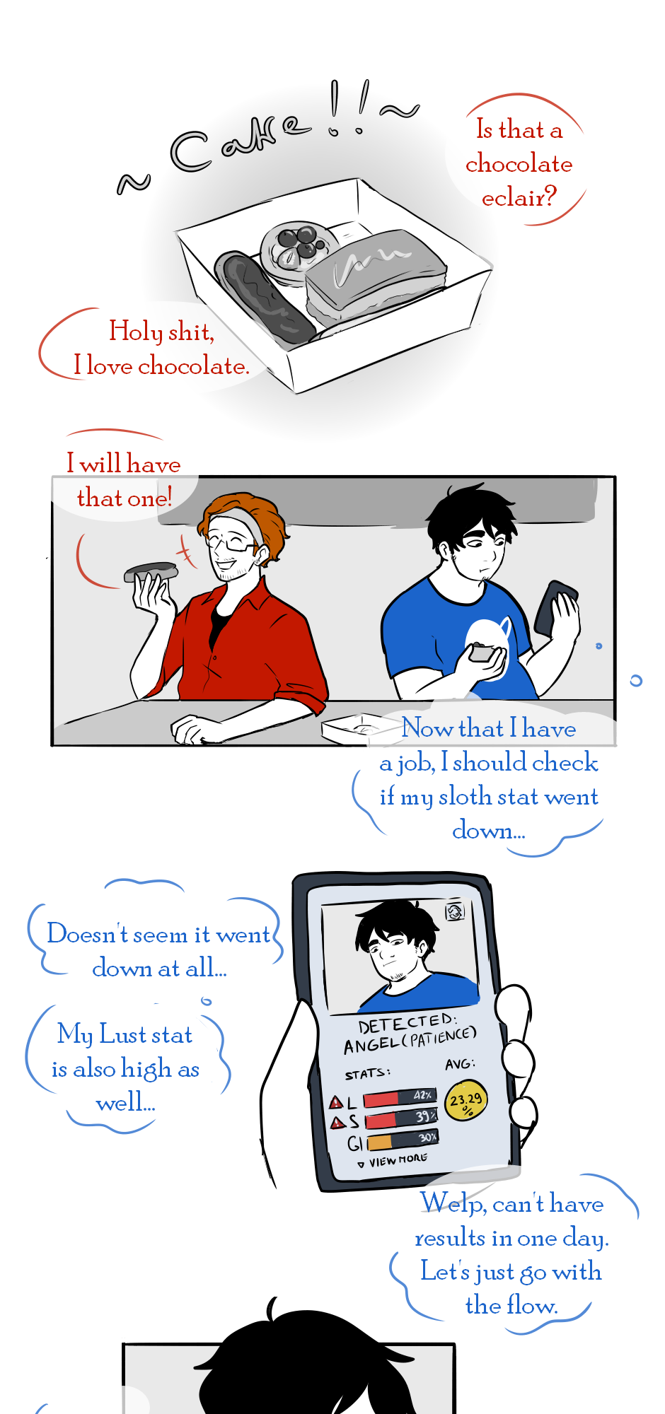 A short little chapter in which Mikhail tests his soul scanning app on Stefan while he is having an eclair. The app doesn't work on him, but it's meant to be used to detect Angels and Demons anyway, so maybe it doesn't work on Humans.