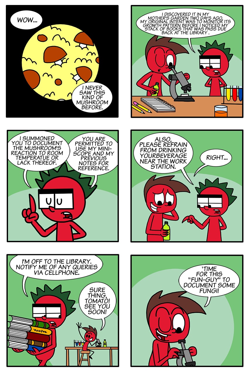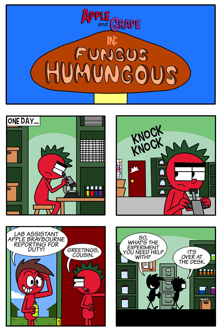Apple tries to clean up a mishap he caused in Tomato’s lab involving a mysterious fungus. Follow and purchase! Instagram www.instagram.com/apple.and.grape/ Facebook www.facebook.com/appandgrpe/ Redbubble www.redbubble.com/people/Chazs-Stuff/shop