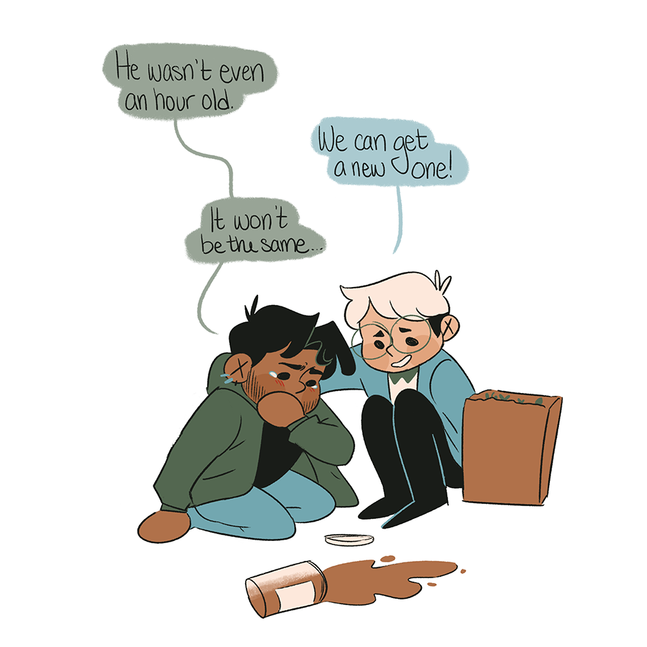 You shouldn’t cry over spilled milk, but it’s okay to cry over spilled coffee. Alex just needs time to mourn his loss :,)