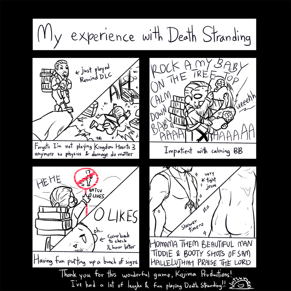 Based on my first experience playing Death Stranding. Disclaimer: I do not own the characters in Death Stranding, it's a video game that belongs to Kojima Productions.