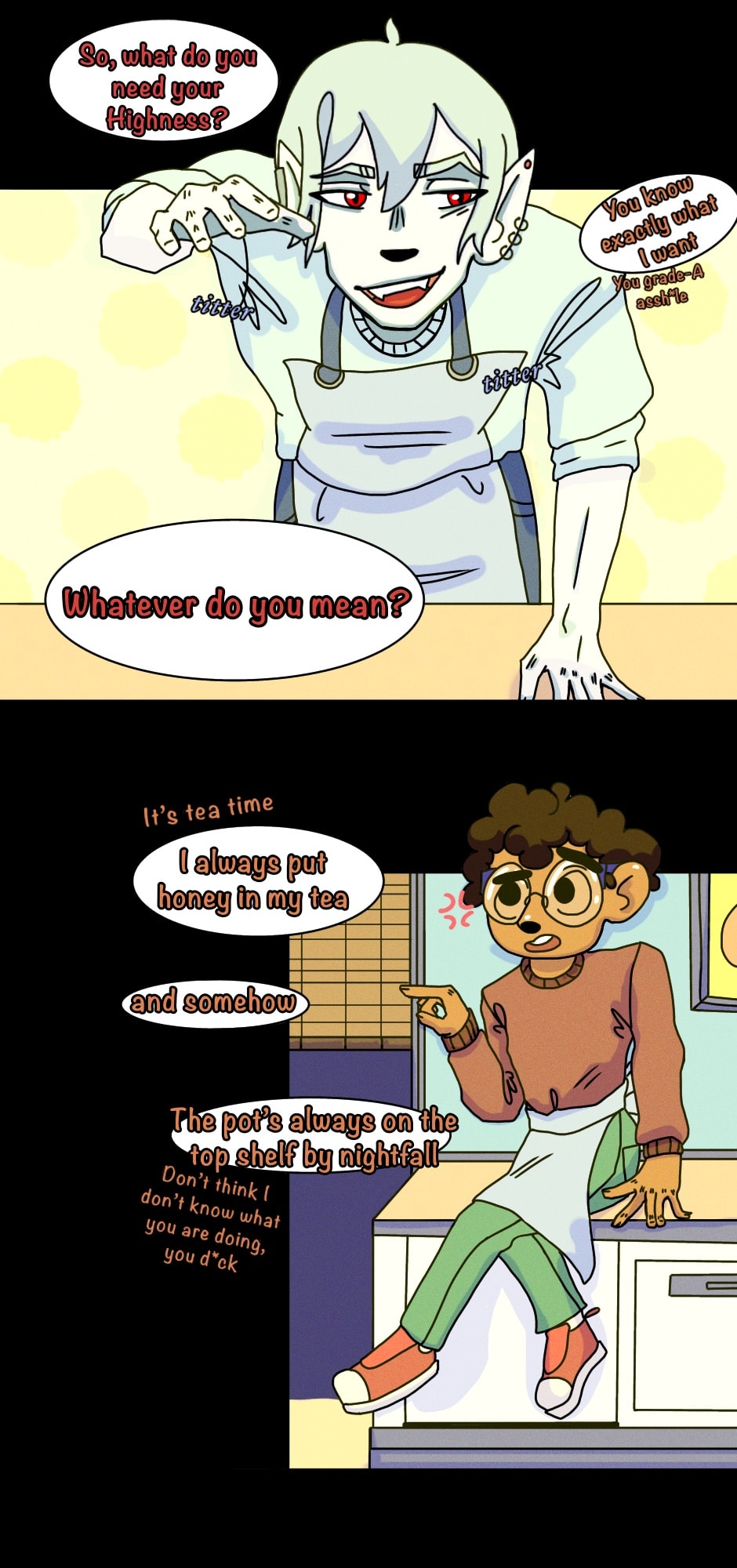 * translation from Flemish: Give me your treasure ** reference to Kabouter Plop, a Flemish kids show produced by Studio 100 > Whole episode of Wim slander 😌✨ > hehe inconsistent art style