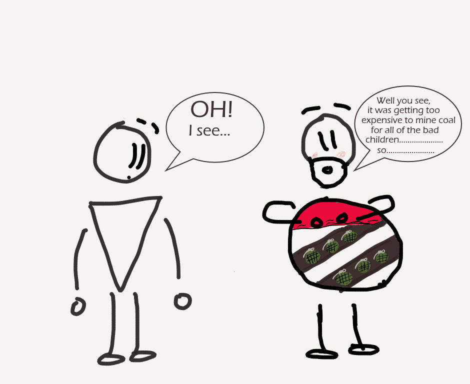 I mean he has a point... If I ever got coal in my stocking I would probably go sell it :P Drawn by Ryan Edited/Published by Travis Crabbe
