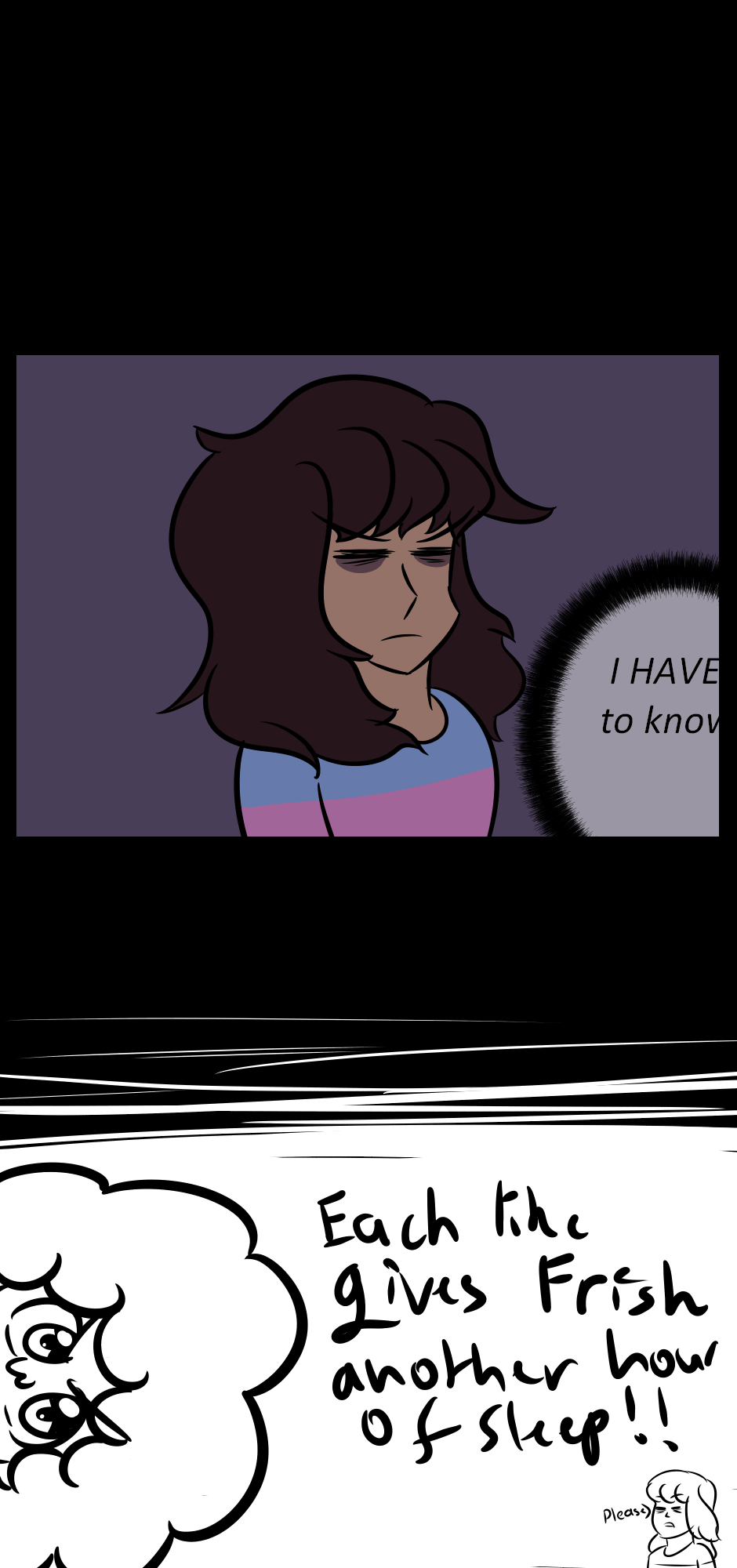 Upon rereading this, I have realized part of the text is cut off for "I have to know." It's really late now, so if I forget to fix this, can you reply to this and remind me?