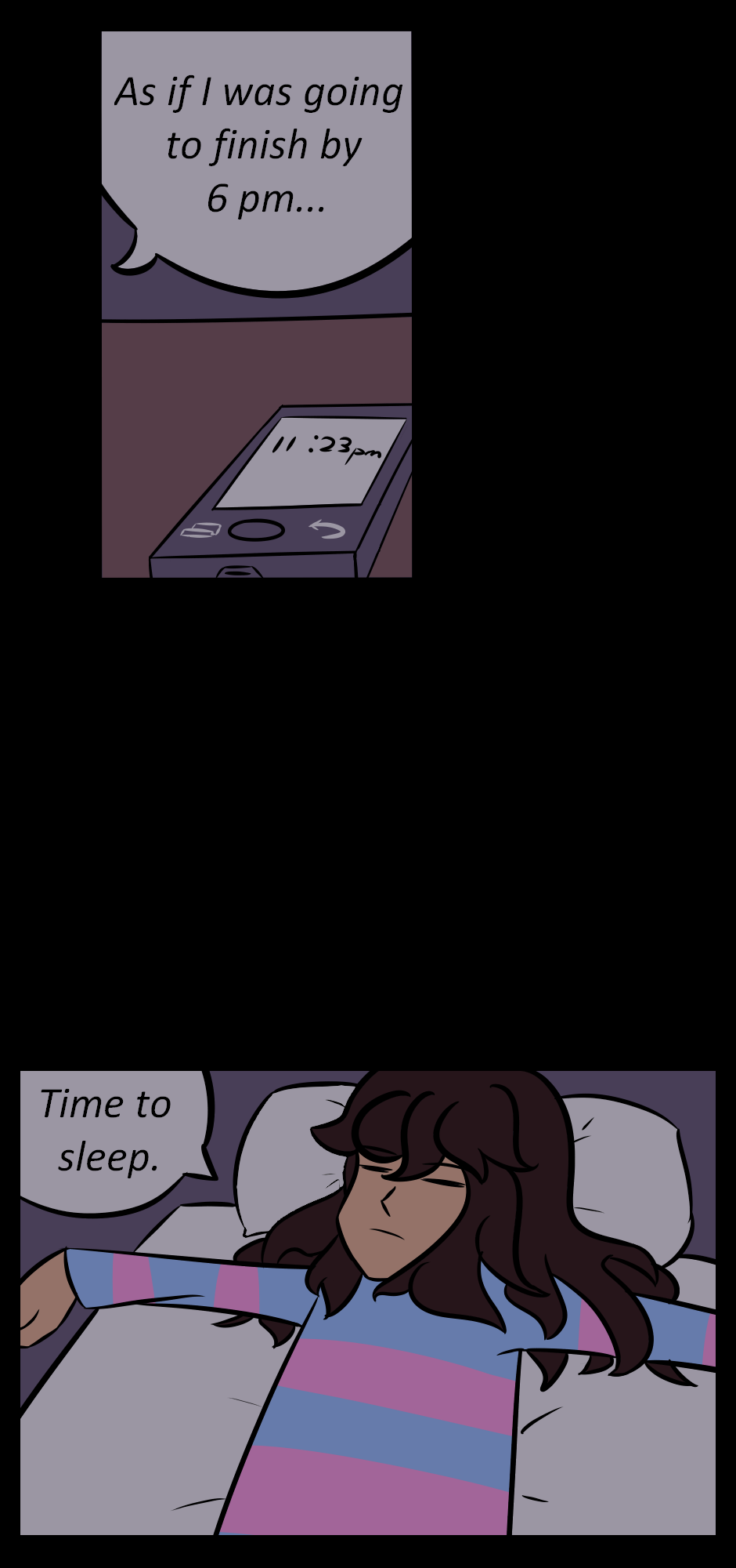 Hello! Guess who is up to date!!! Sparkle Sparkle! This will be coming out on Christmas, so I hope you like it! I apologise for my inability to draw people on a front-on angle laying on a bed. I may fix it once I actually figure out how it works. Anyway, this may seem a bit slow right now, but I really wanted to elaborate on Frisk's life on the surface a bit before they went underground. I feel like it would not justify, but explain their actions in later episodes. It also explains why they went underground in the first place, and gives more to Frisk's character.