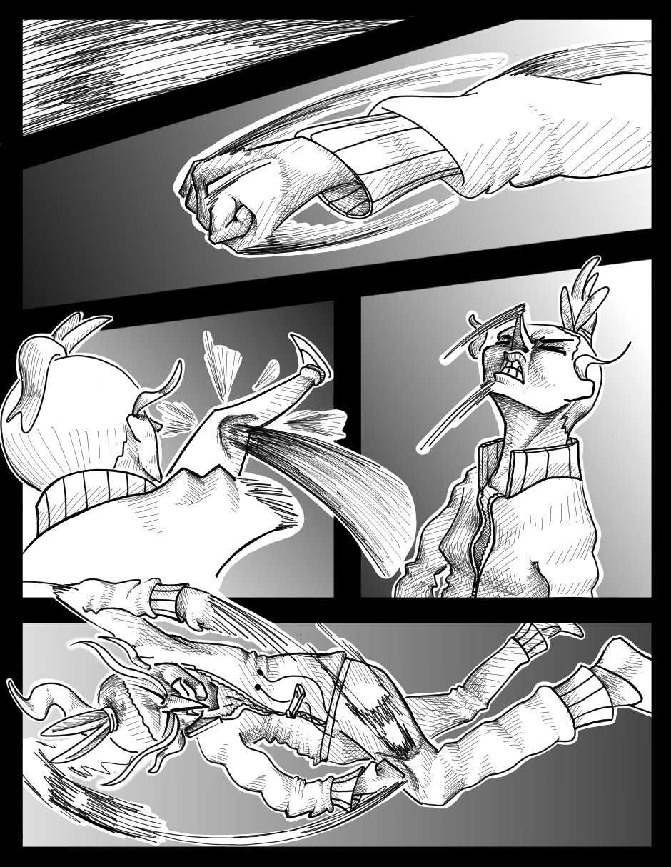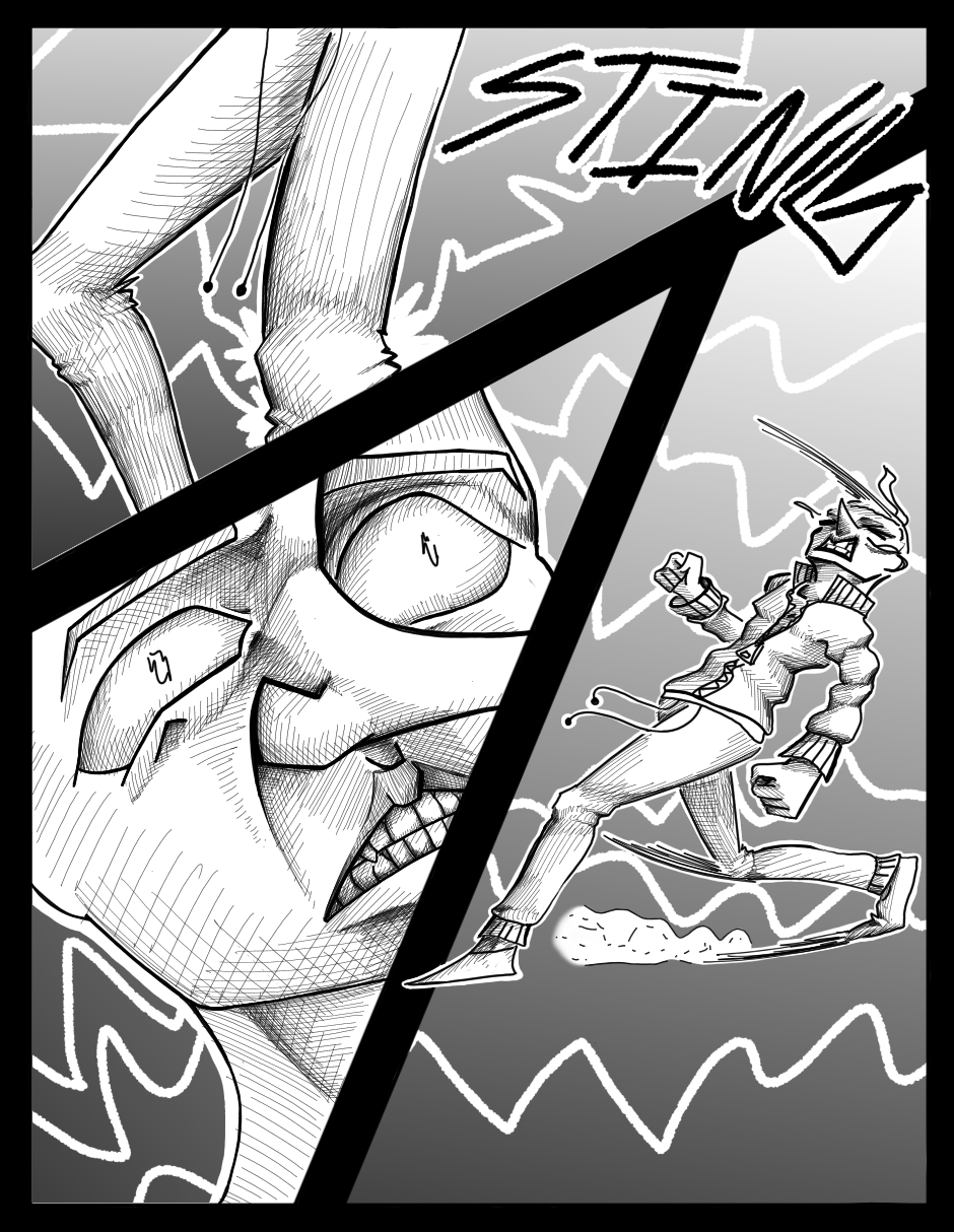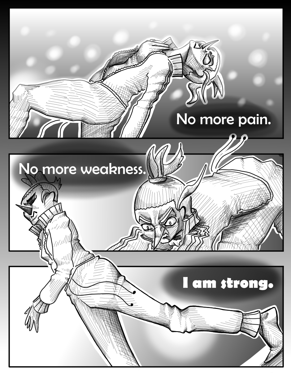 Okay this chapter literally did a 180* degree! It’s so much difference than the first chapter?! Even the art style is completely different; it sort of like remind me of Oda’s One Piece even. Its great that you’ve manage to improve your original artstyle because some of the panels here reminds me of the first chapter. The shading from the pencil strokes looks amazing! I’ve also noticed that the font changed? Honestly, I love the font/dialogue in this chapter. It just made the story seem more dire and serious. Keep on improving!