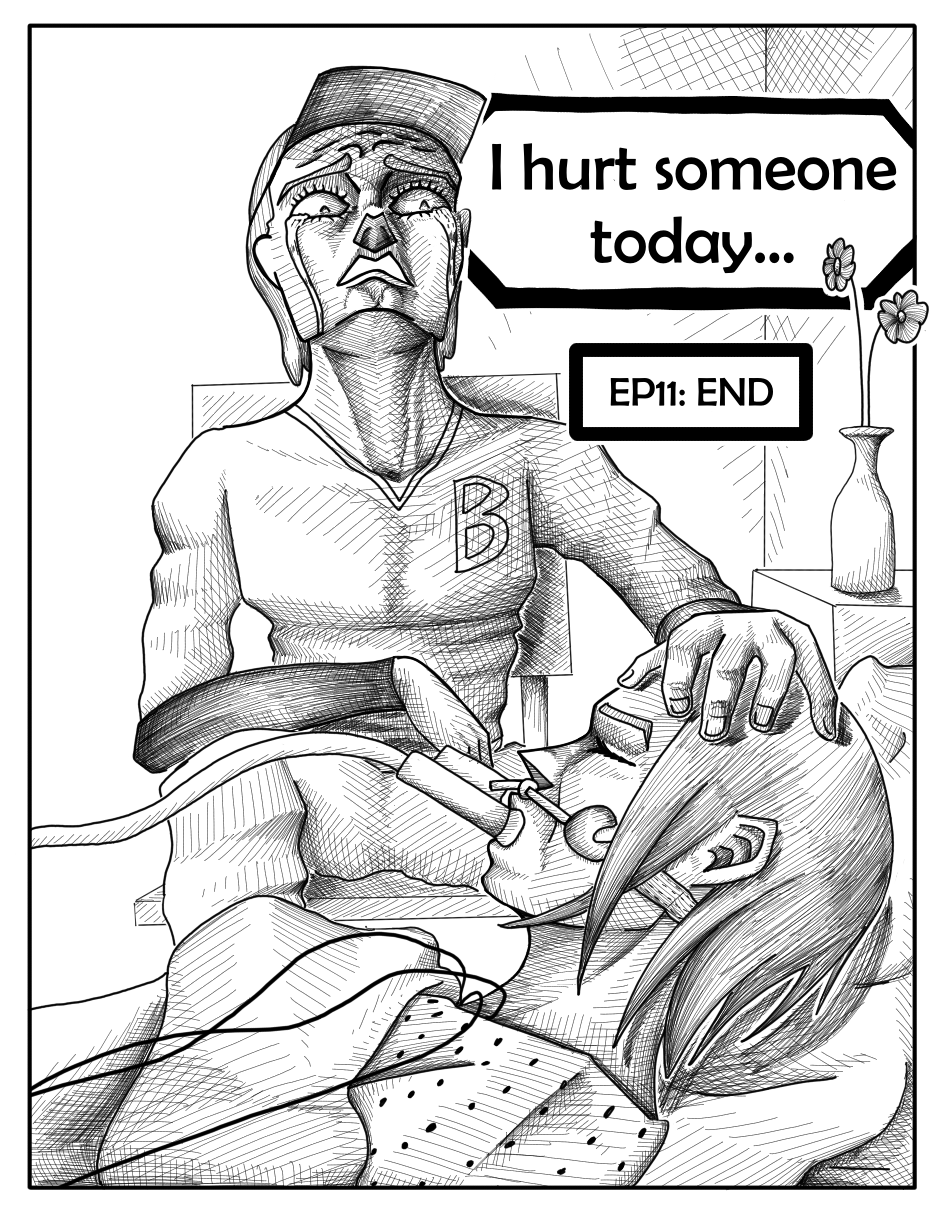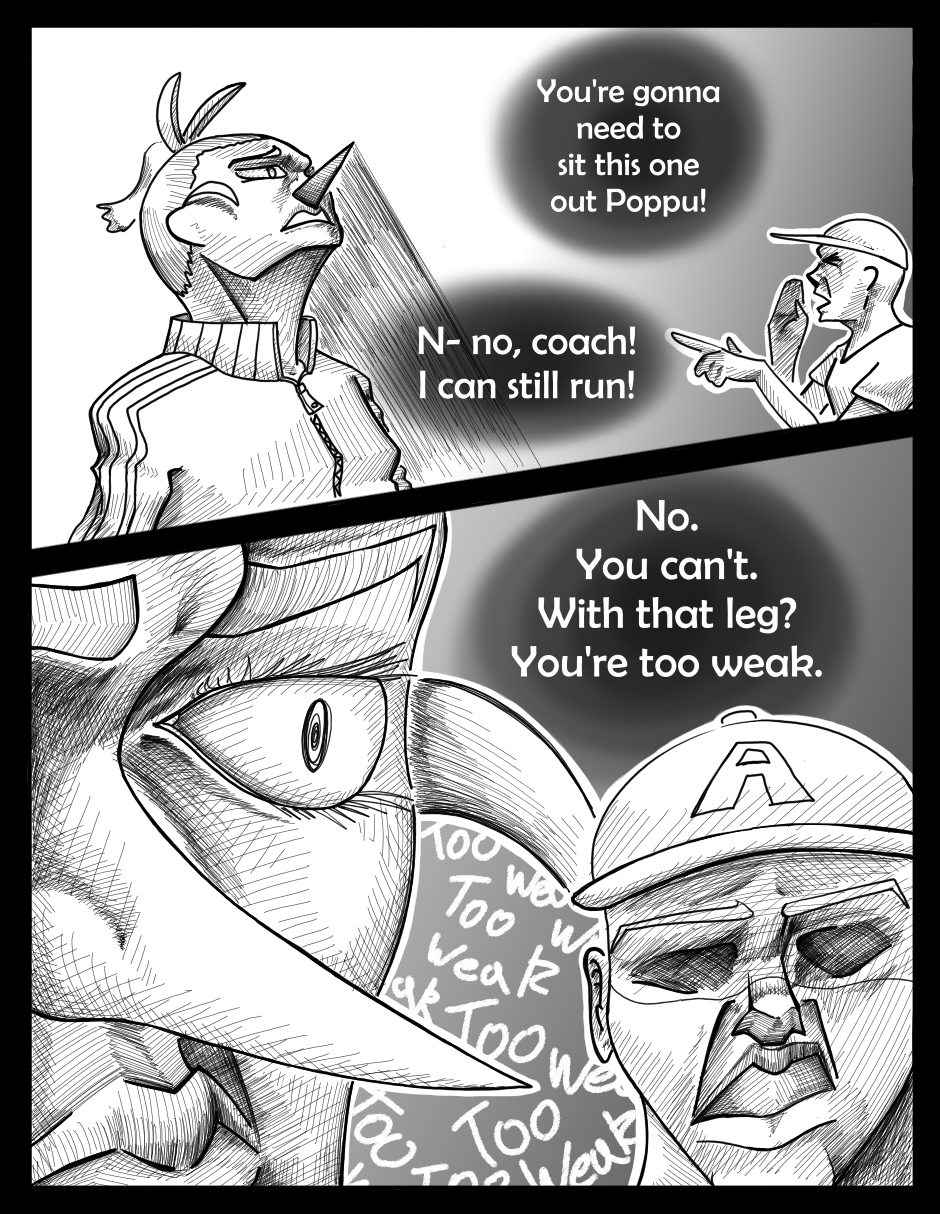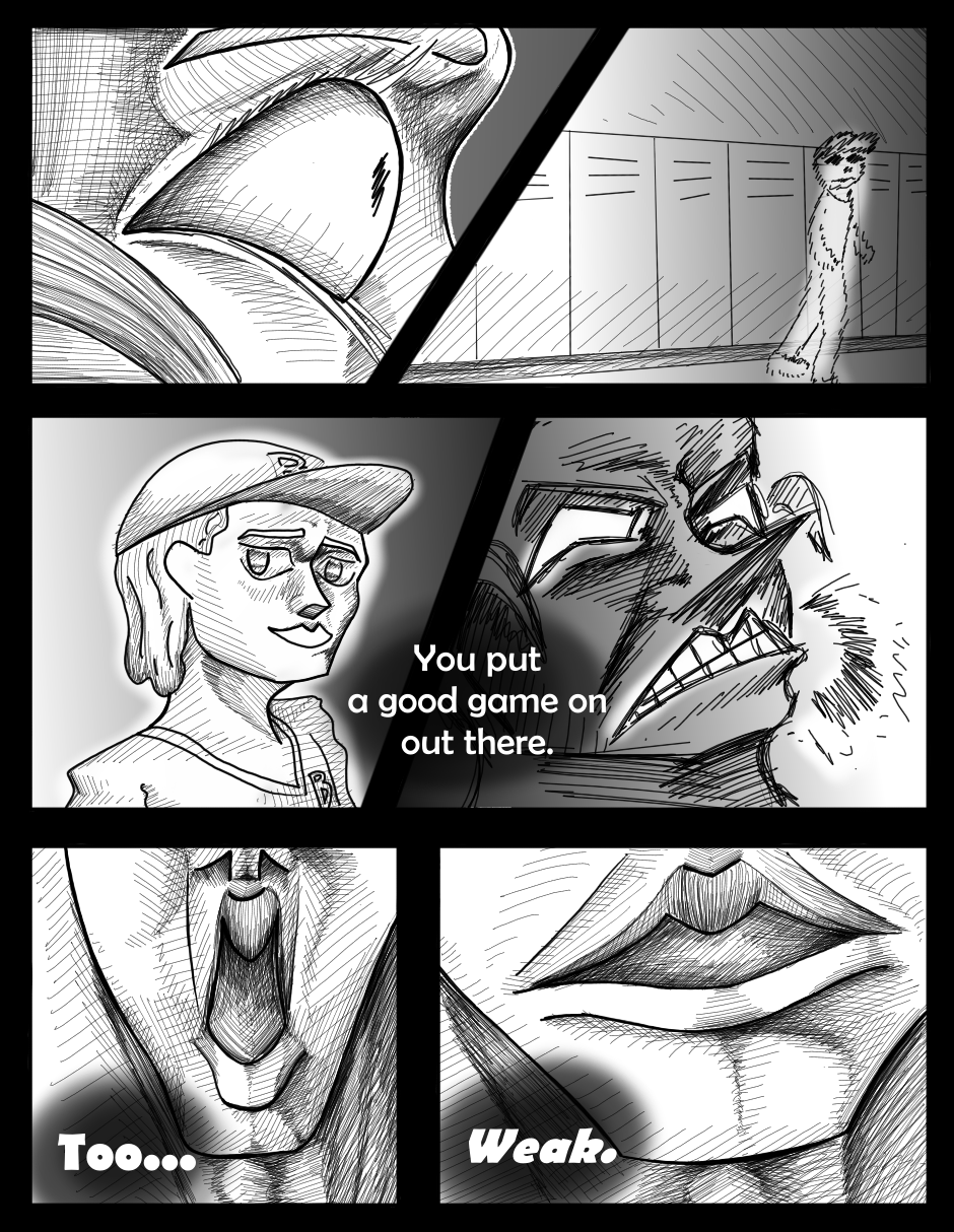 Okay this chapter literally did a 180* degree! It’s so much difference than the first chapter?! Even the art style is completely different; it sort of like remind me of Oda’s One Piece even. Its great that you’ve manage to improve your original artstyle because some of the panels here reminds me of the first chapter. The shading from the pencil strokes looks amazing! I’ve also noticed that the font changed? Honestly, I love the font/dialogue in this chapter. It just made the story seem more dire and serious. Keep on improving!