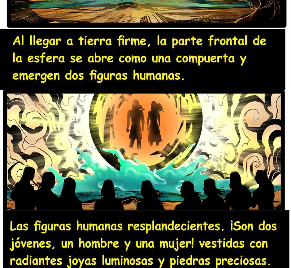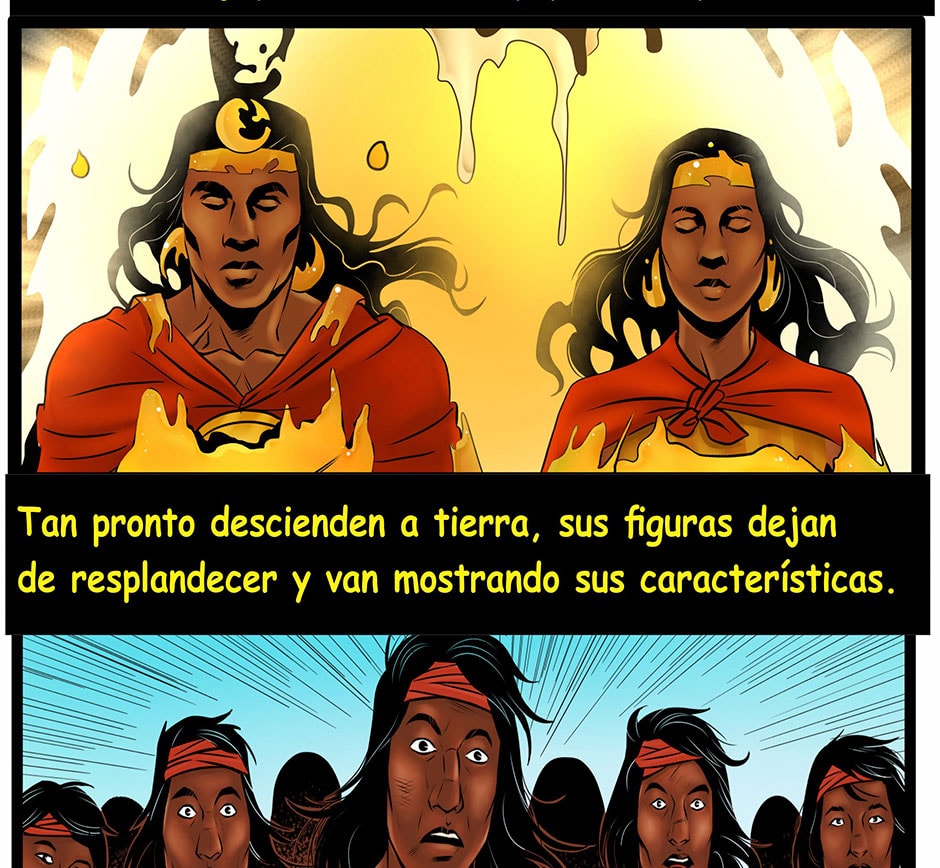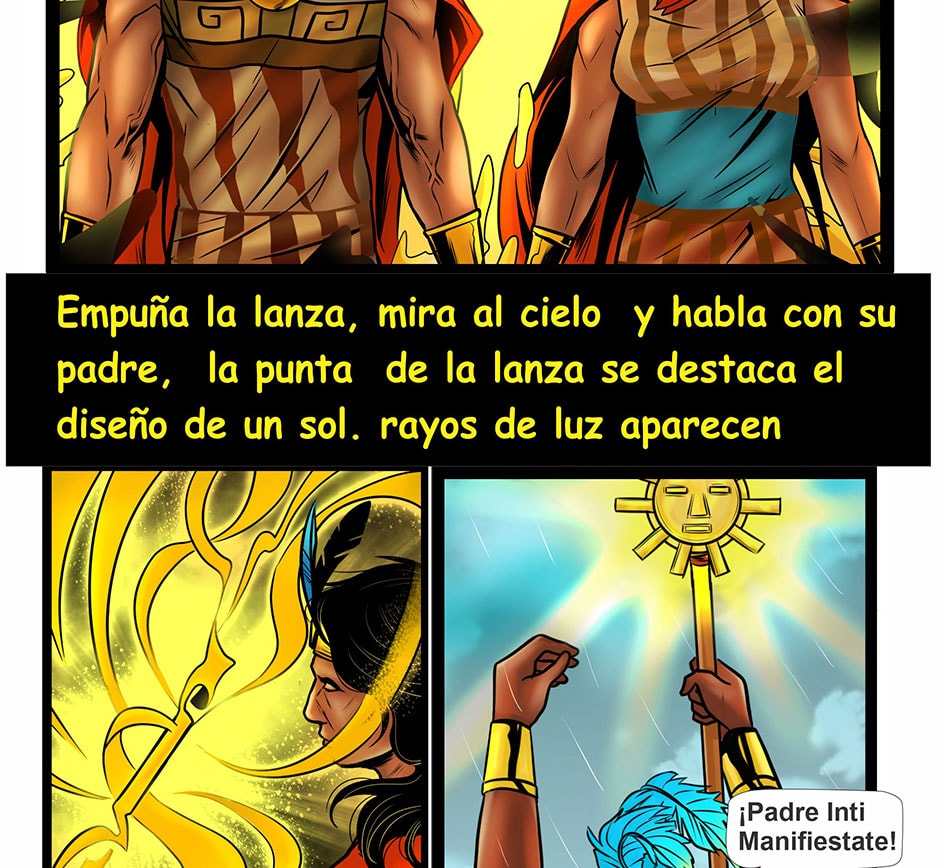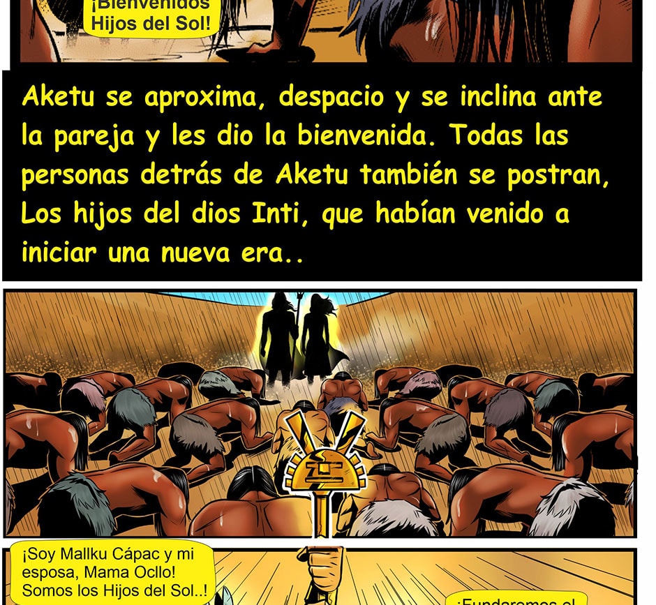 Los hijos del dios Inti, salieron de una burbuja de oro desde las entrañas de la Pachamama, emergiendo hacia la superficie de un gran lago, entre montañas y cristalinos ríos, para fundar el Gran Tahuantinsuyo, llegaron cuando más lo necesitaba el pueblo elegido del Dios Inti, ellos fundaron la Capital Cusco, enseñándoles técnicas agrícolas, de construcción, crianza de animales, metalurgia, entre otras cosas.