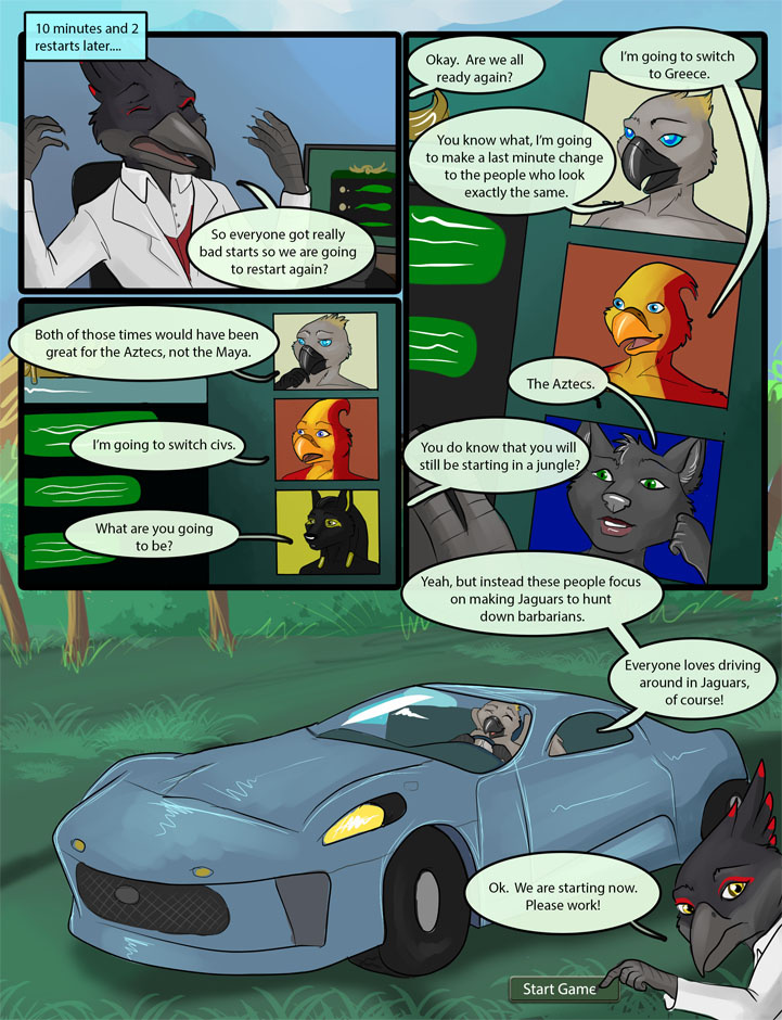 Avory's Game of Civilization V is based on Firaxis Games' Sid Meier's Civilization V: Brave New World. The comic is written by AvianBritish and Illustrated by Ulairo. Full size version can be found on FurAffinity: www.furaffinity.net/view/18294982/
