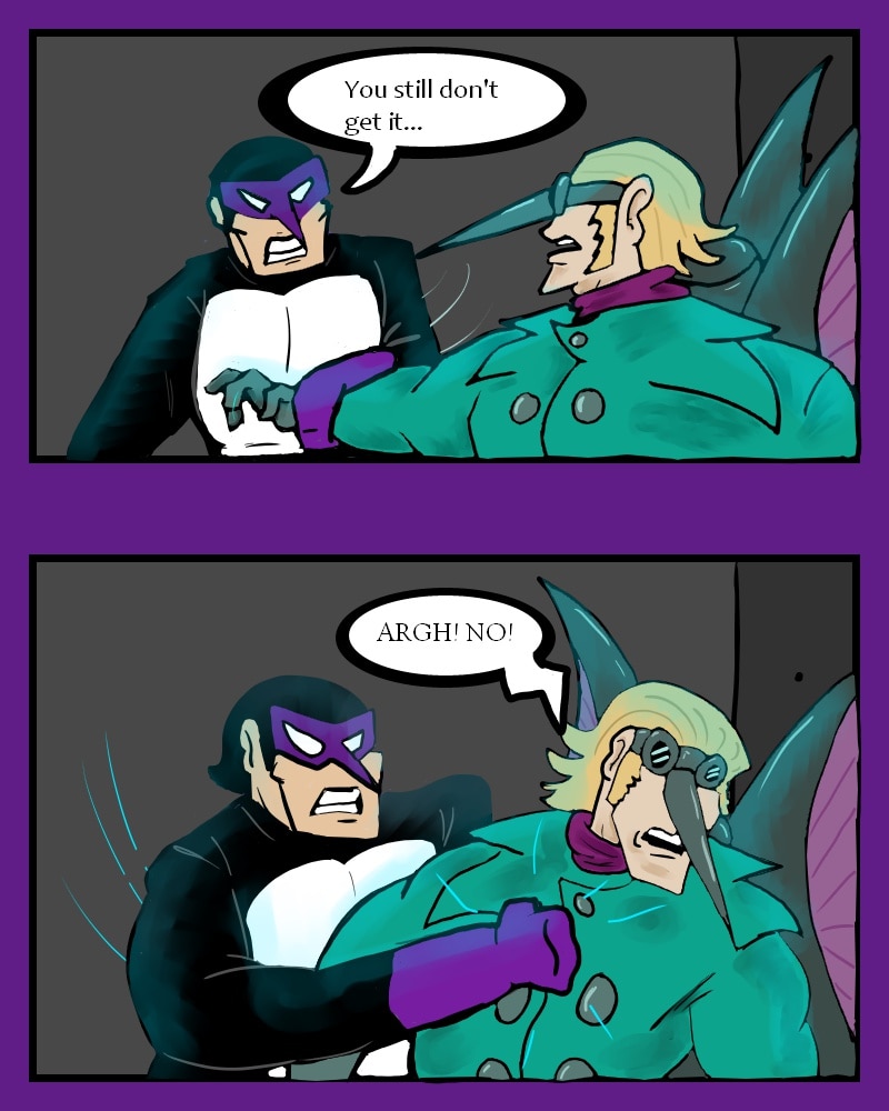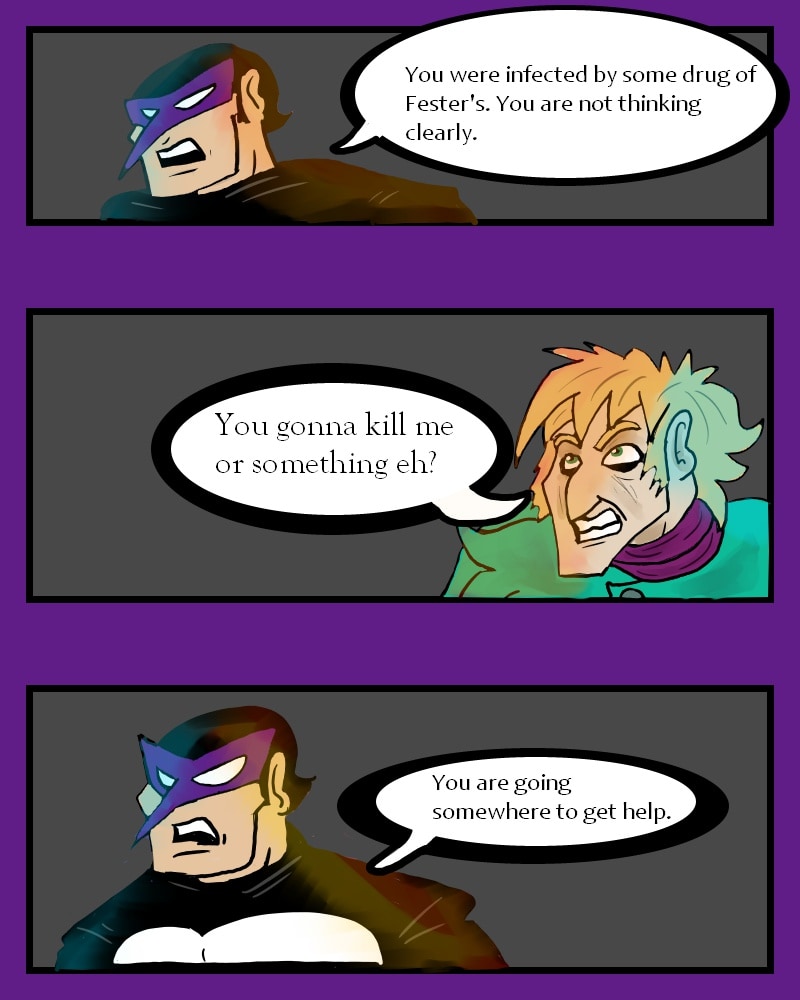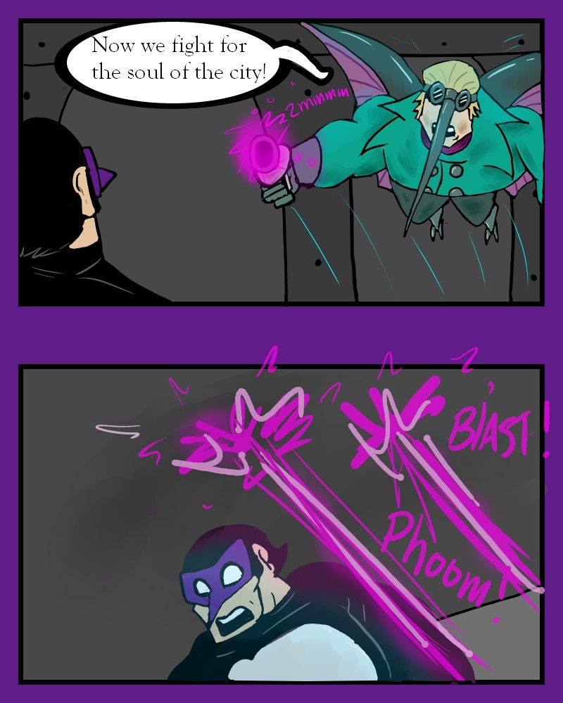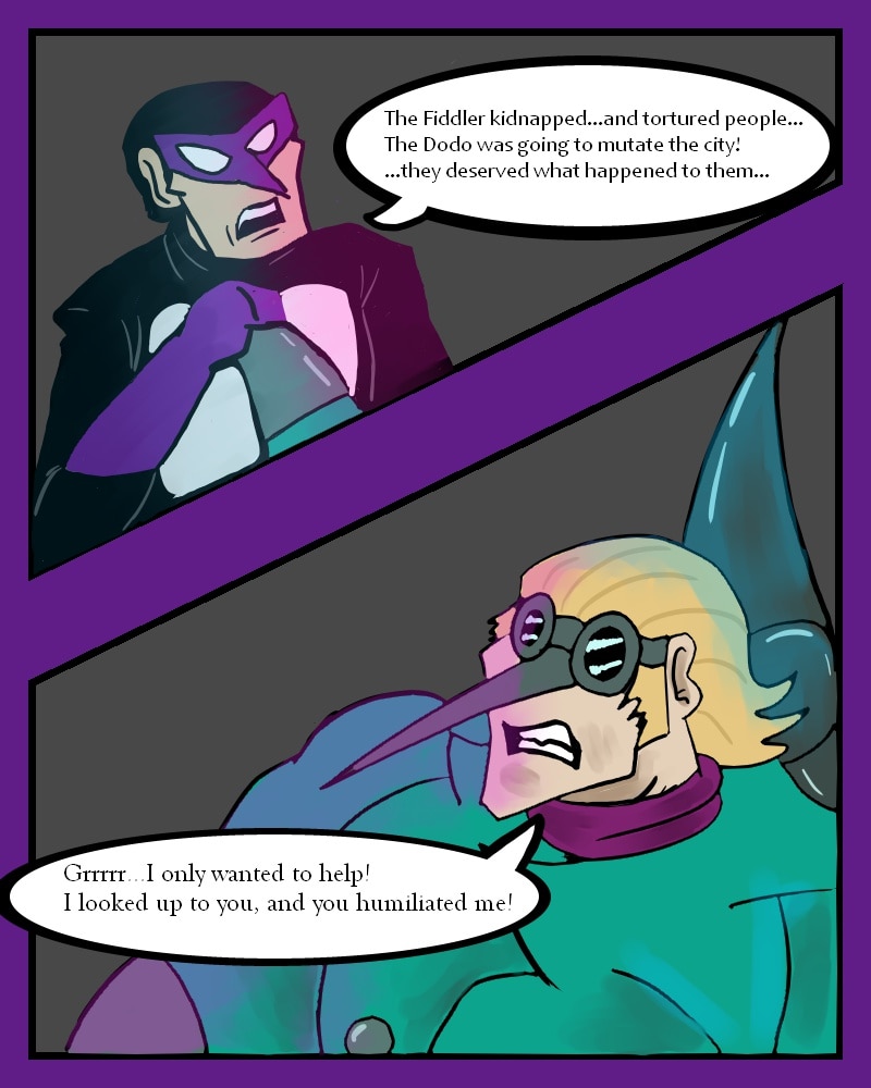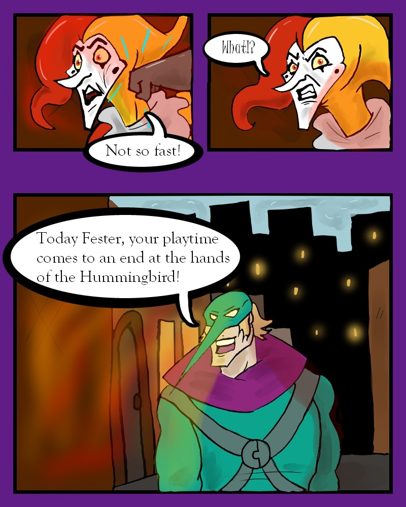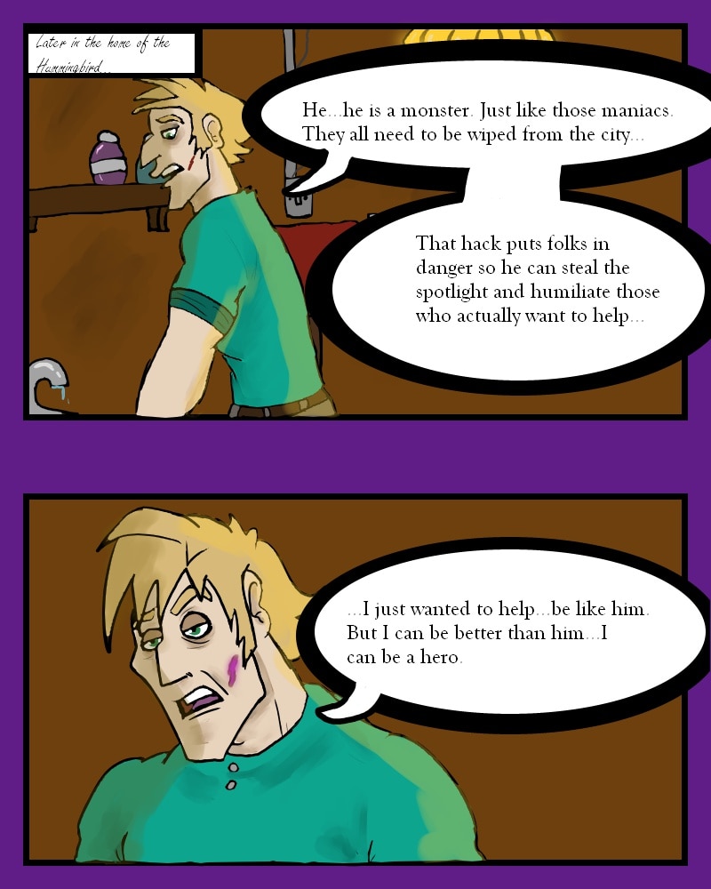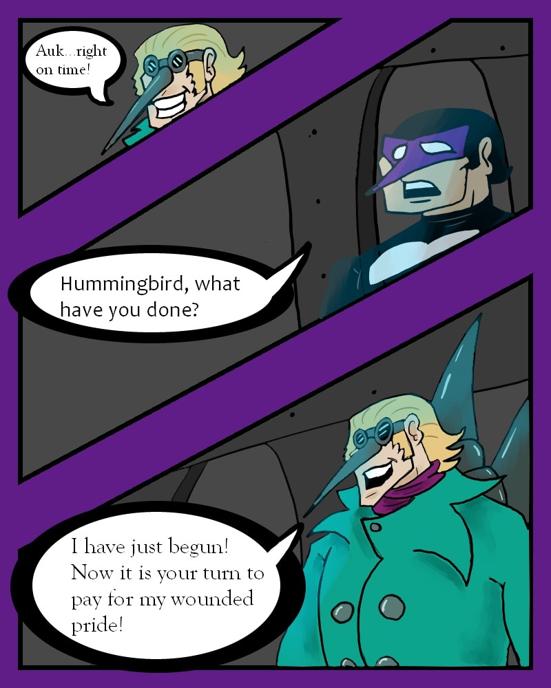 While fighting a supervillain known as Fester, Auk meets the Hummingbird. Things go south when the new fanboy decides to take matters into his own hands.