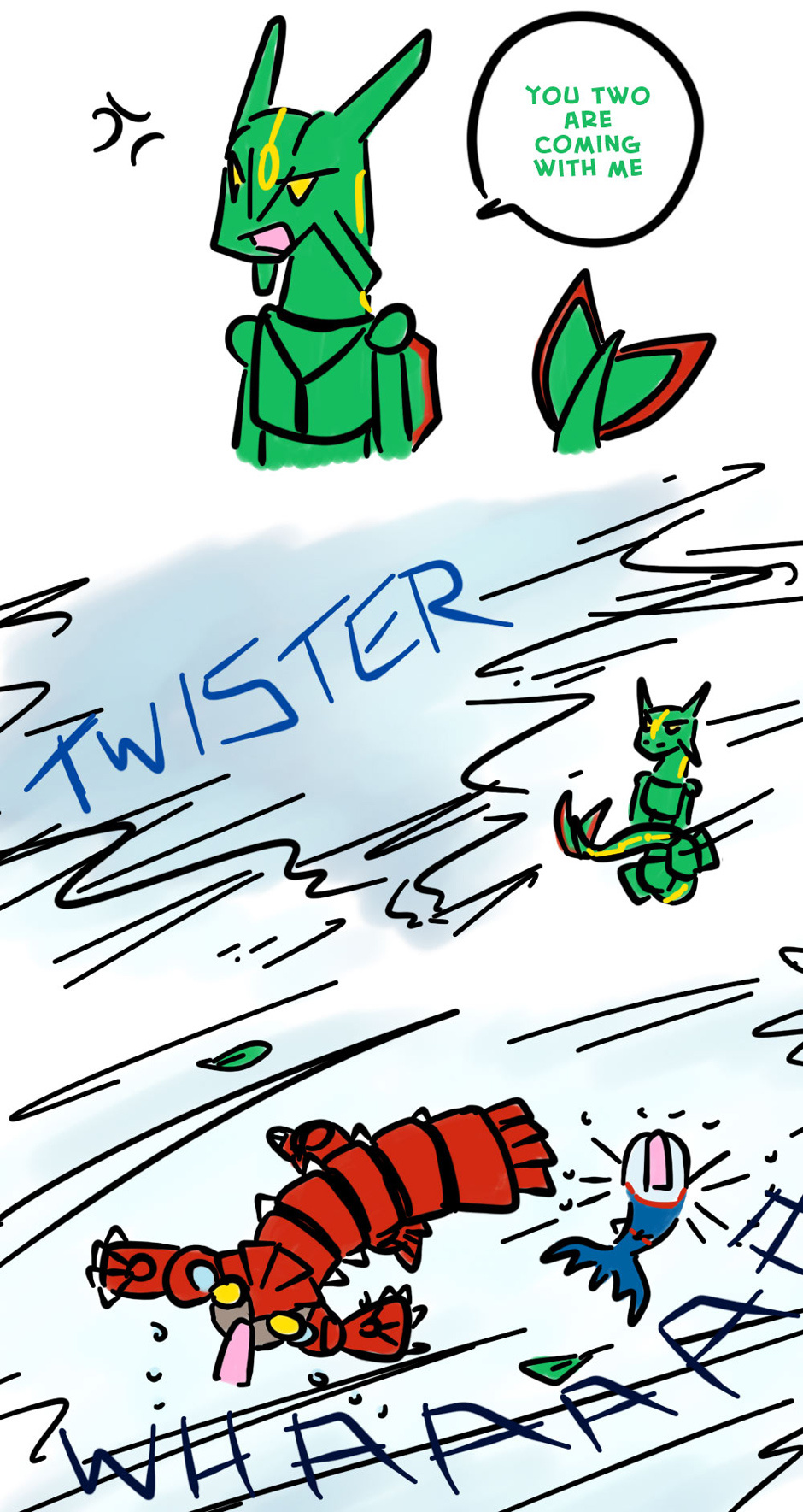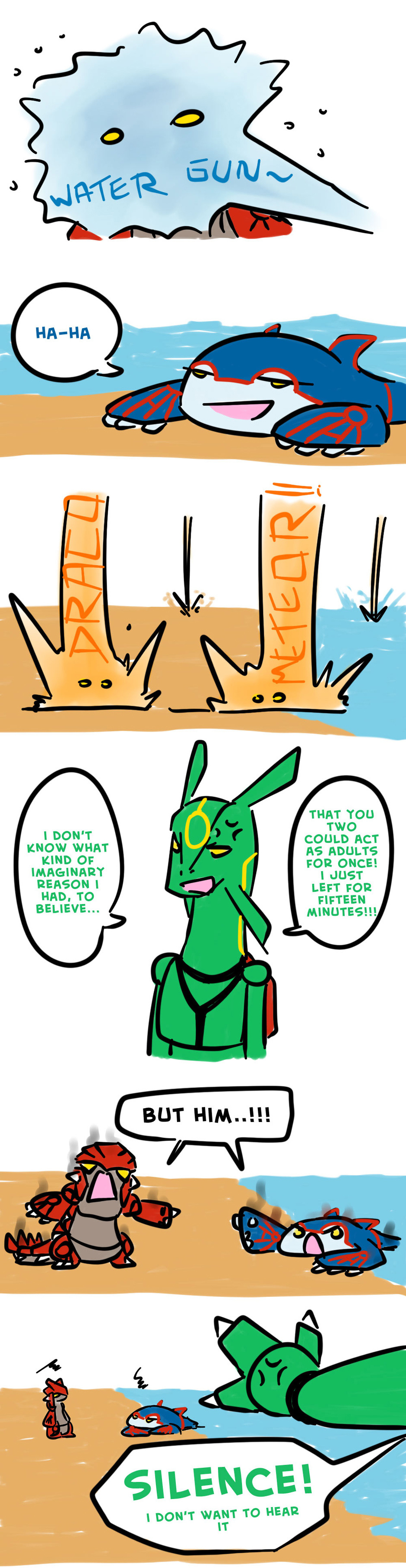 Kyogre and Groudon giving some headache to Rayquaza, as always...