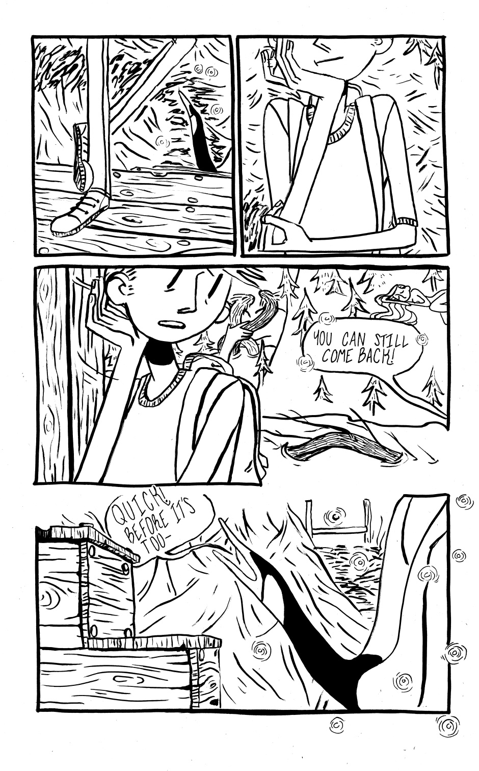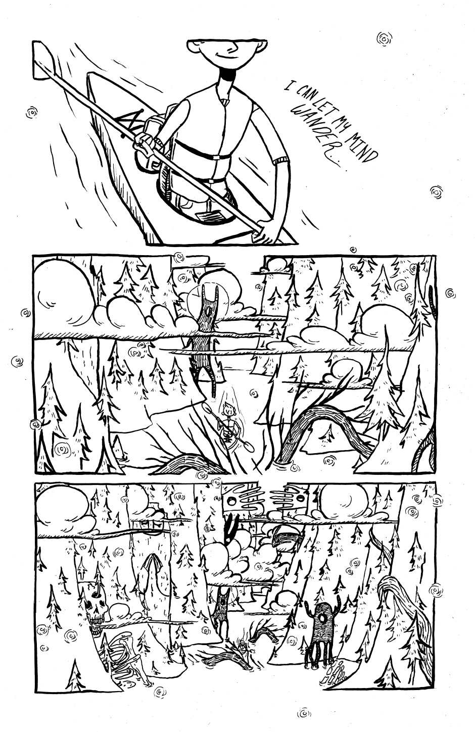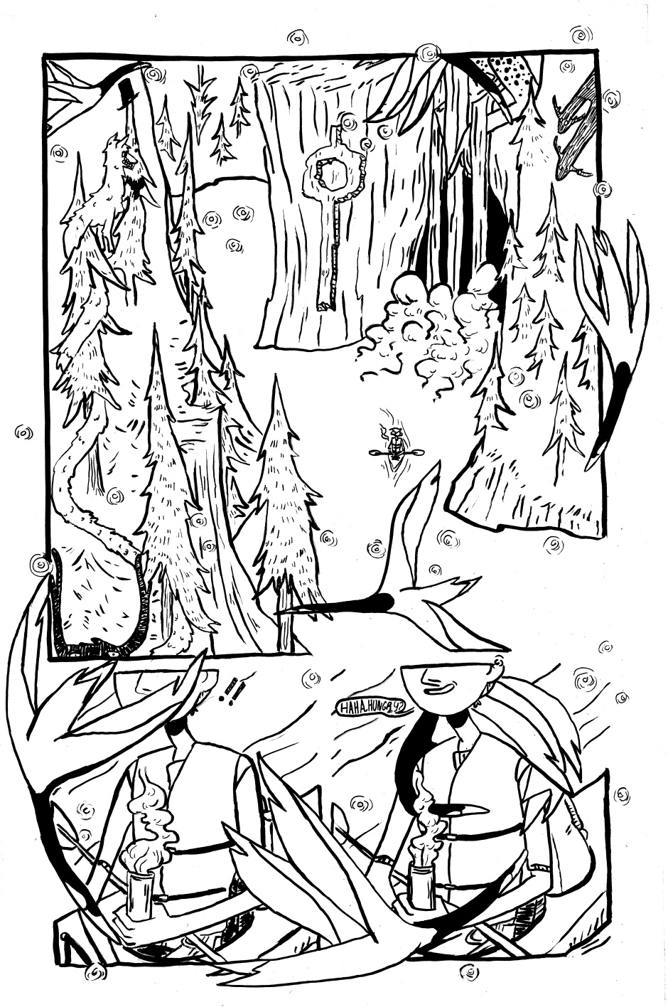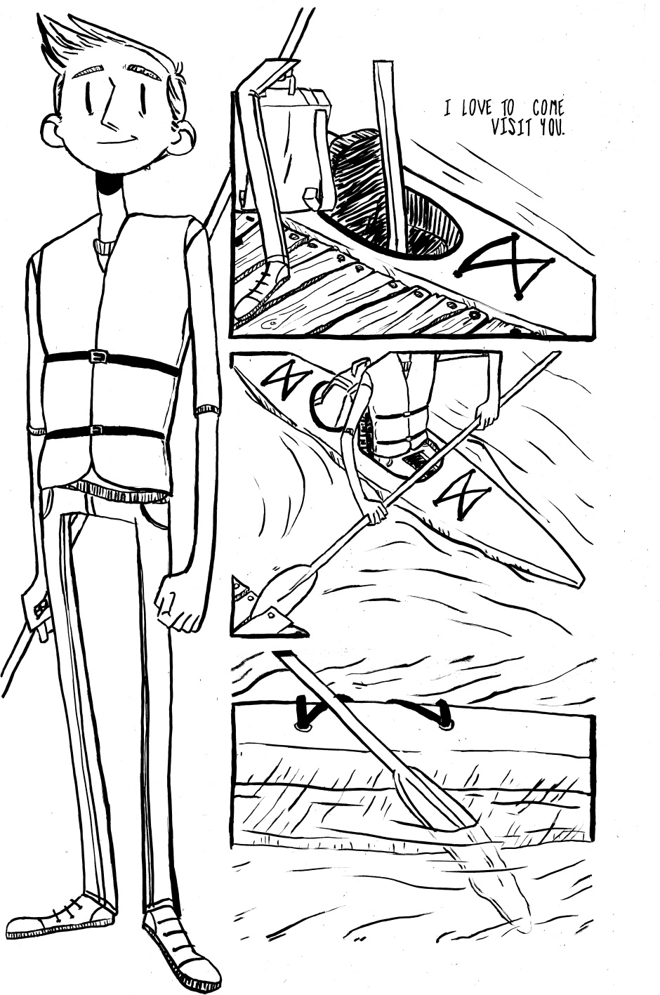 A trip down the river can lead someone to distant places, far away from their reality. Is it worth it to come back? Art adaptation by me, story by http://tesseractmemory.tumblr.com/ (my classmate) I'm going to colour this over the holidays, so you'll see that version eventually