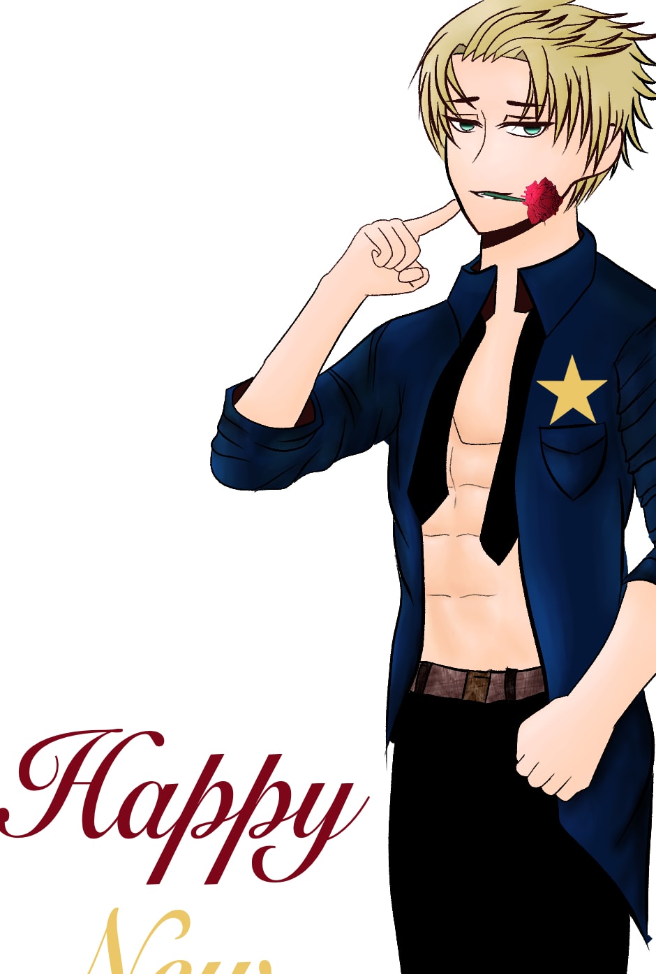 After reading GingerLoge's comment, I just seriously had to XD The next year is almost here, and what better way than to have Officer Douglas wish you a Happy New Year. Also, thanks KweenOtaku for doing the illustration, and we hope you like the illustration.