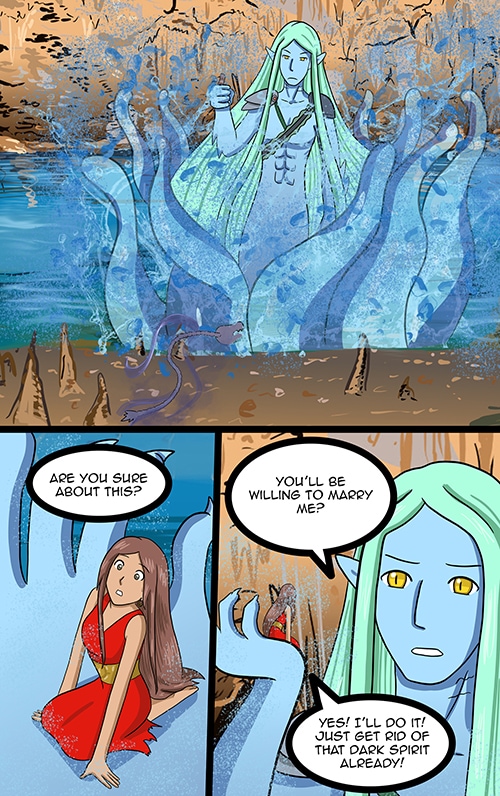 Elva is a law student famous for her card readings and love spells, who just wants to find a rich guy to marry. But when she accidentally drops her love potions on a river, it's guardian spirit wants to make her his bride!