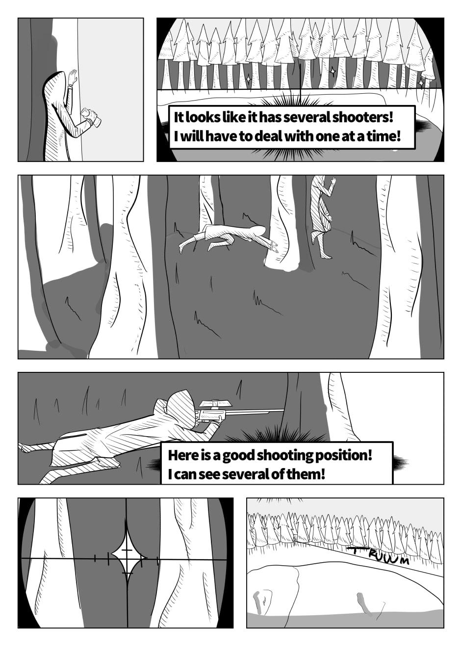 A group combat at an urban scenario and a sniper fight in the woods