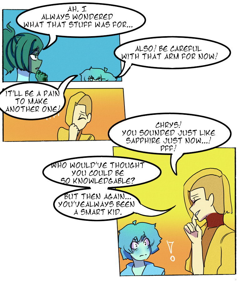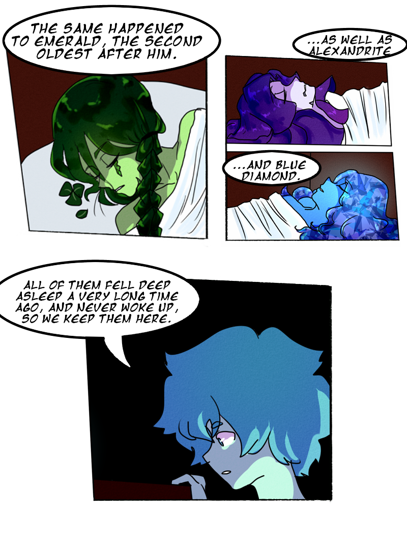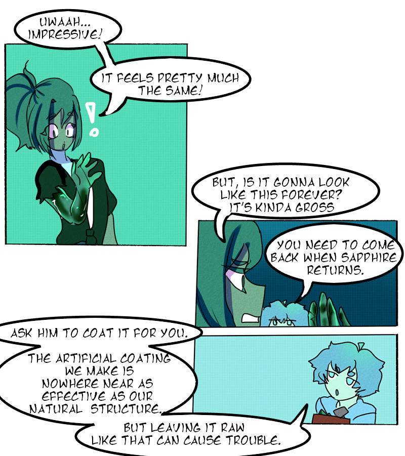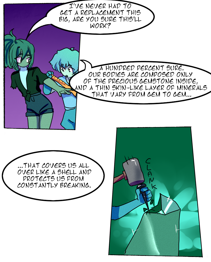 Being the youngest and most frail of his companions, Chrysocolla is shut away from the rest of the world, destined to spend the rest of his life under the protection of his home. He is left to only wonder what could be out there...but not for long.