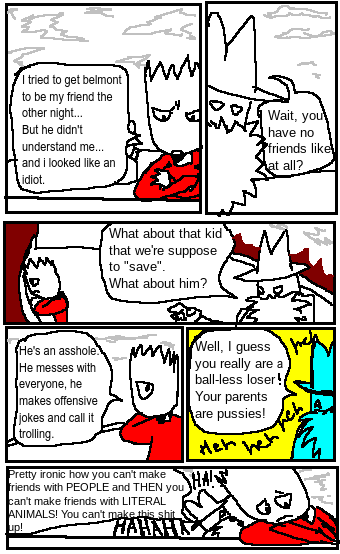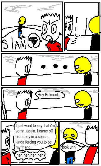 "Belmont" was a short multi-colored webcomic made in js paint. The series is created by me, Robby Tolireko and my friend Ace_Wash in freshmen year of high school. This is it's archive. The writing is fucking horrendous, the characters, the story, everything! The only thing I can compliment myself on was the "style". But yea, not my best work in the slightest! full of not so good humor and really really bad set ups. I guess you could read this if you want to see what was before PSUNDER STRUCK