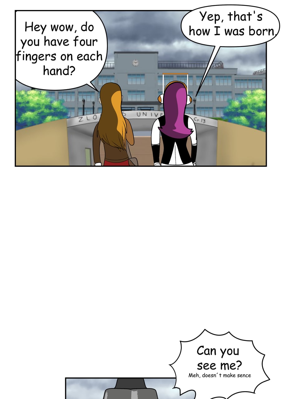 Zannyx and Coralyne finally meet and arrive on campus together to begin the story.