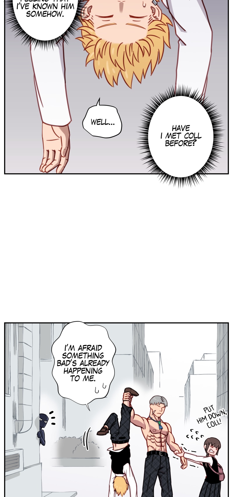 Angelo: do I weigh anything to you? Col: no. It's like holdin a couple of grapes.