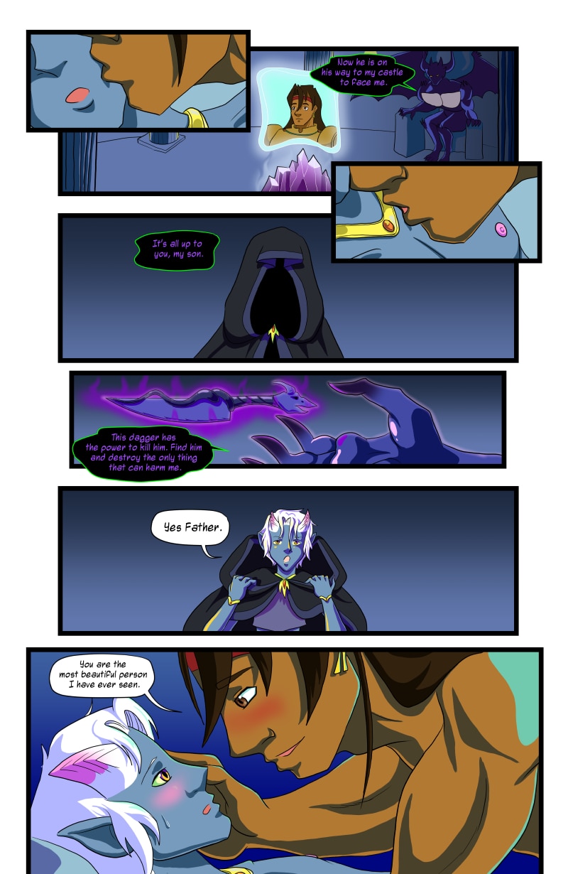 To prevent his own destruction, the Dark Lord Arenjee sends his son Oz to dispatch the Hero of the Four Goddesses. Only it seems poor Oz can’t find the heart to finish the job since he’s fallen for his enemy. Stuck between his feelings and his duty, what’s a boy to do when his new boyfriend is destined to kill his dad?