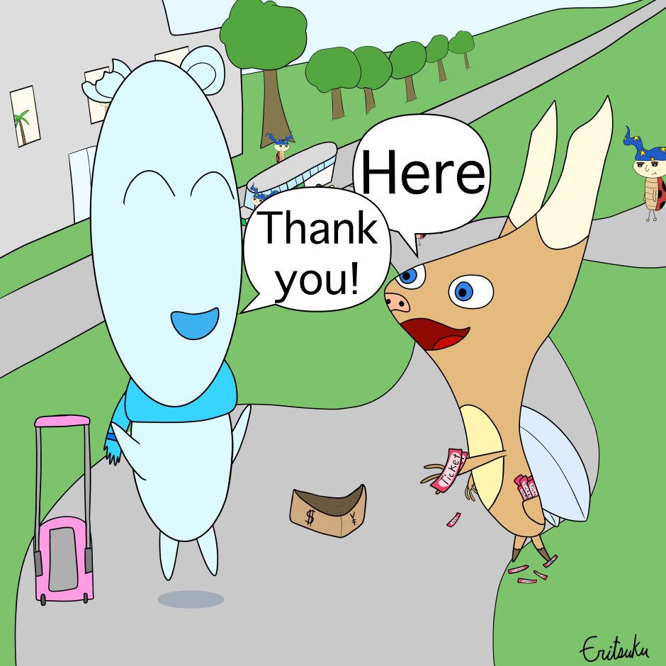 Popo is a small blue character that loves cute things. He is adventurous and curious, but also clumsy and forgetful. Recently, Popo’s love of adventure has led him to move abroad and start a whole new life. Now Popo lives in an apartment with his friends Fred, Boogie, and his pet sea cucumber Zuki. With their help Popo is learning about a whole new country. With its strange cultures and mysterious languages, what kind of thing will Popo experience next?