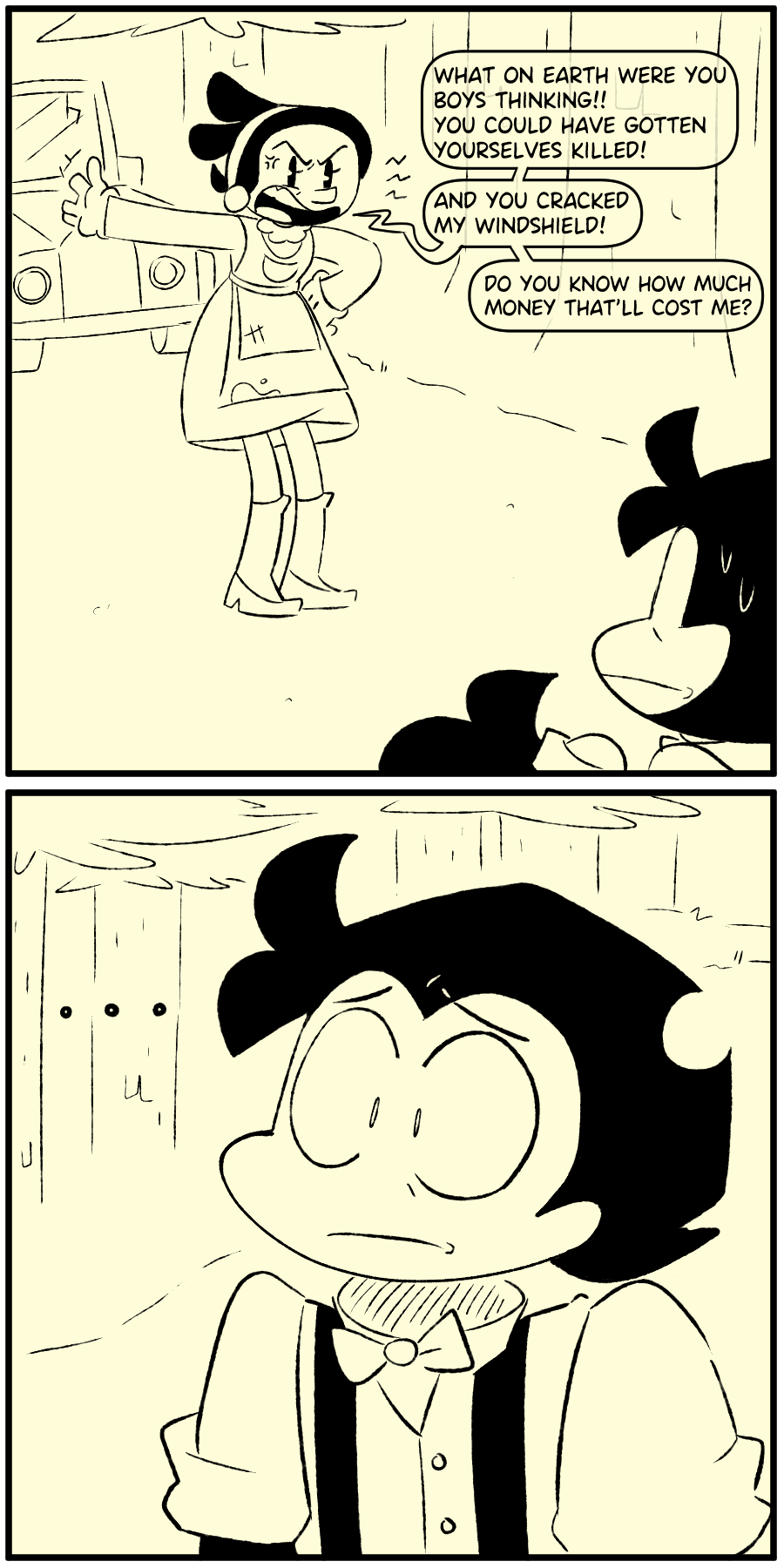 Yeah, I would panic if two complete idiots crashed onto my car while I was minding my own business.