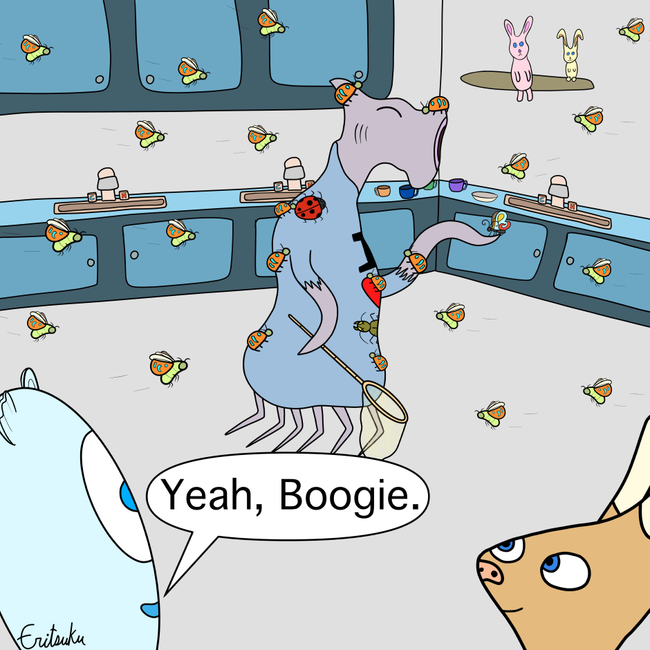 Popo is a small blue character that loves cute things. He is adventurous and curious, but also clumsy and forgetful. Recently, Popo’s love of adventure has led him to move abroad and start a whole new life. Now Popo lives in an apartment with his friends Fred, Boogie, and his pet sea cucumber Zuki. With their help Popo is learning about a whole new country. With its strange cultures and mysterious languages, what kind of thing will Popo experience next?