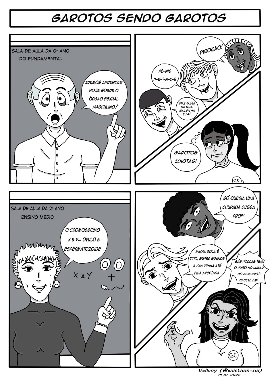 Pior que não estou de brincadeira, os garotos eram tipo assim mesmo. Gzuis, eu só queria cochilar ou prestar atenção na aula e esses pentelhos enchendo o saco. A maioria era bagunceiro.