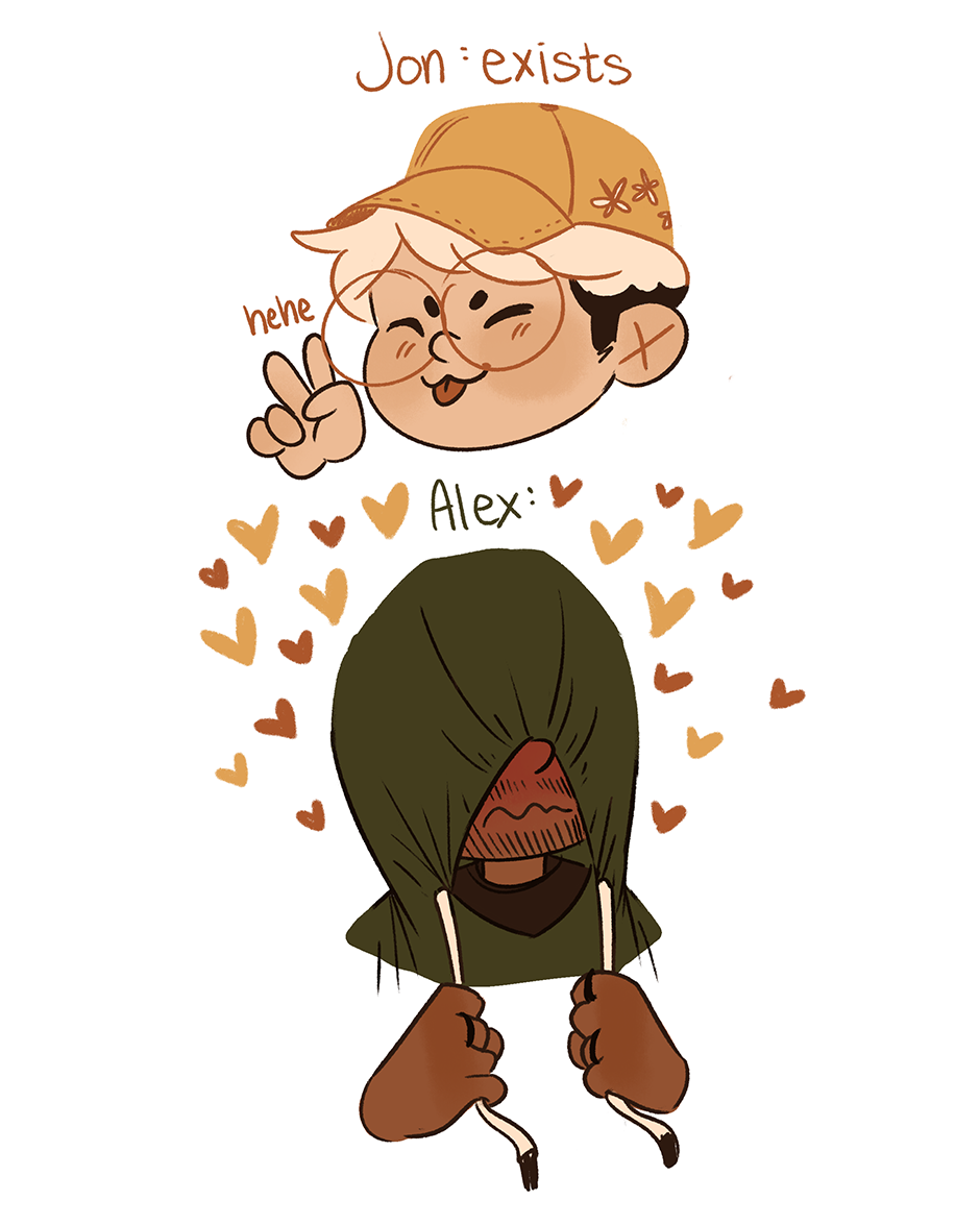 Jon is like the epitome of sunshine and flowers. Sometimes it’s too much for Alex to bear :,)