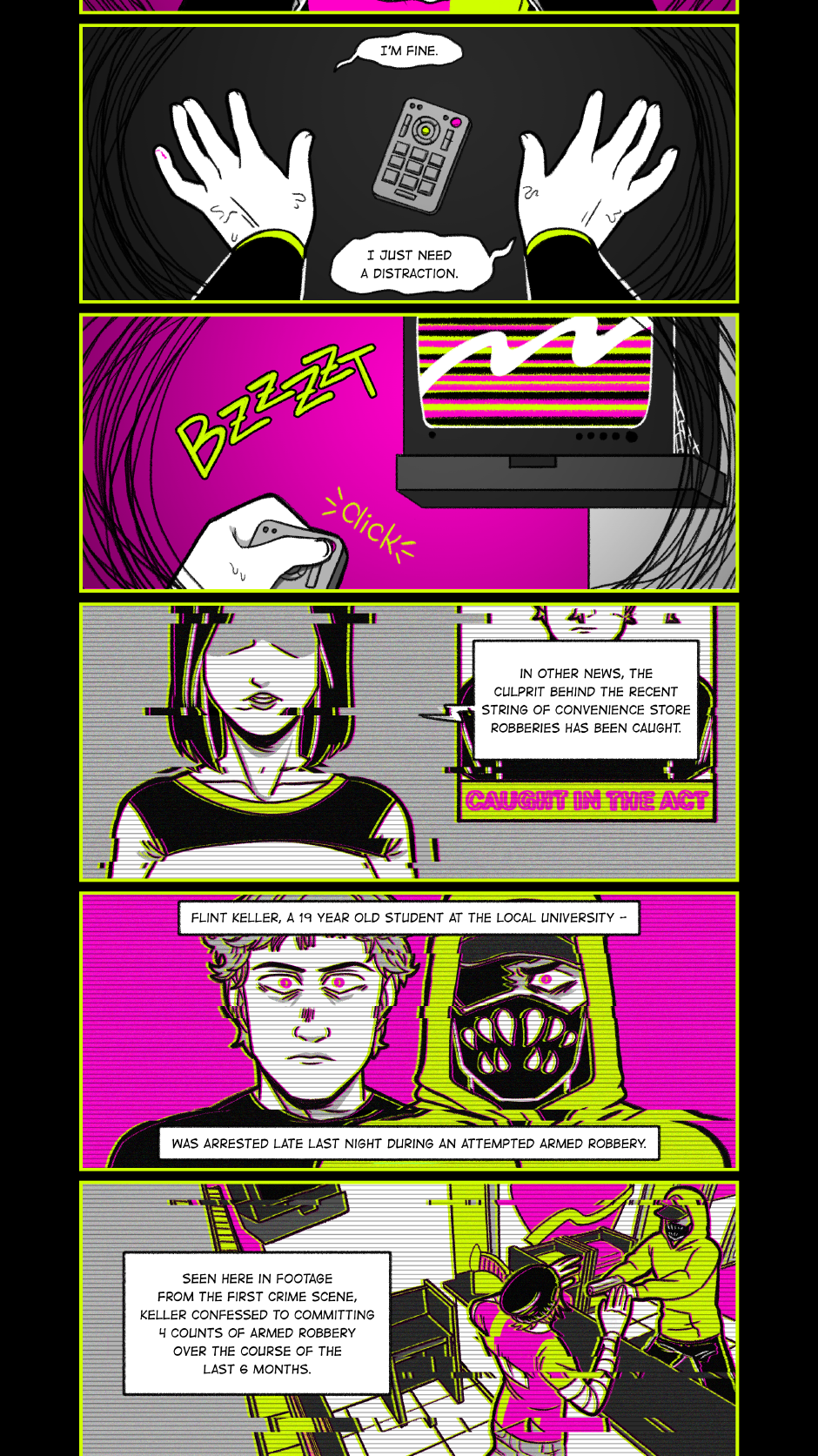 After a life threatening experience at his already shitty retail job, Caleb finds himself consumed by septic memories. Nearly every second without a distraction is spent back in that moment: in vivid paralyzing fear. Desperate for any escape, Caleb finds himself teetering on the edge of indulging in his most implosive urges when he meets Bunny. A similarly broken young woman with her own unhealthy obsessions, Bunny forces Caleb to confront his fears and make a choice: fight, flight, or freeze.