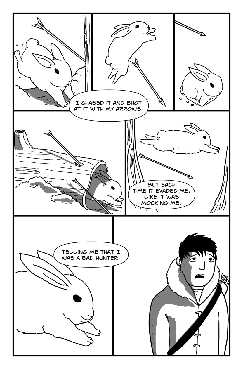 One cold night is about a story of a young hunter that wanted to prove that he can provide for his village. He breaks away from the other hunters to in order to catch an elk by himself. Distracted by an elusive rabbit, he finds himself deeper in the forest when he is suddenly attacked by a bear.