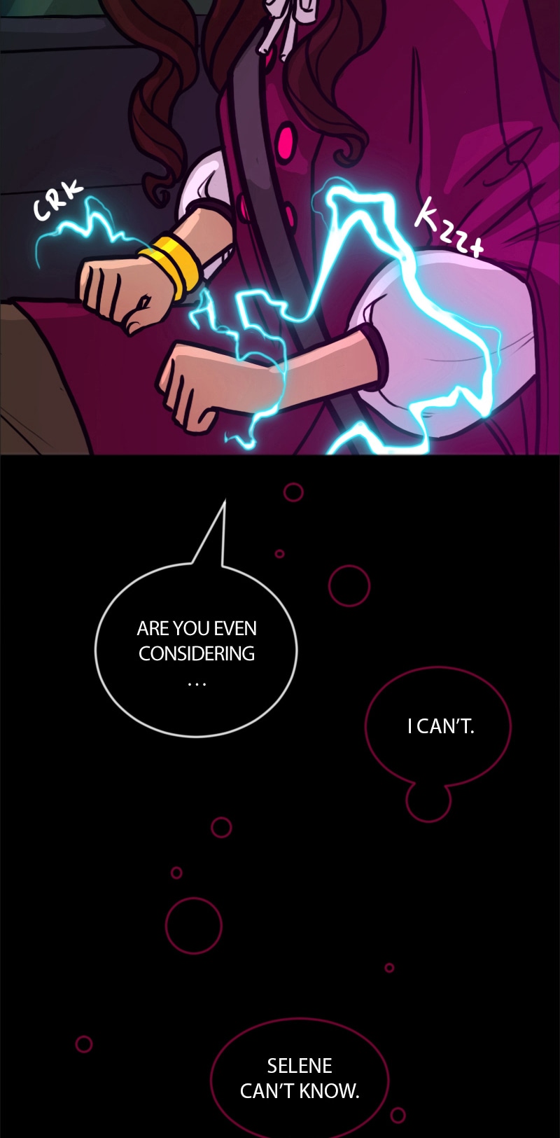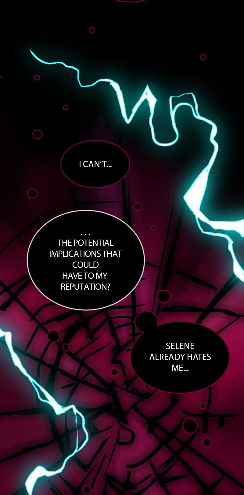 i've said it before but MAN the backgrounds are gorgeous. and i love how the little crackle turns into bigger ones as she gets more panicked...and i already don't like selene >:P