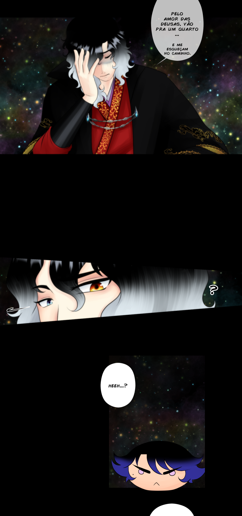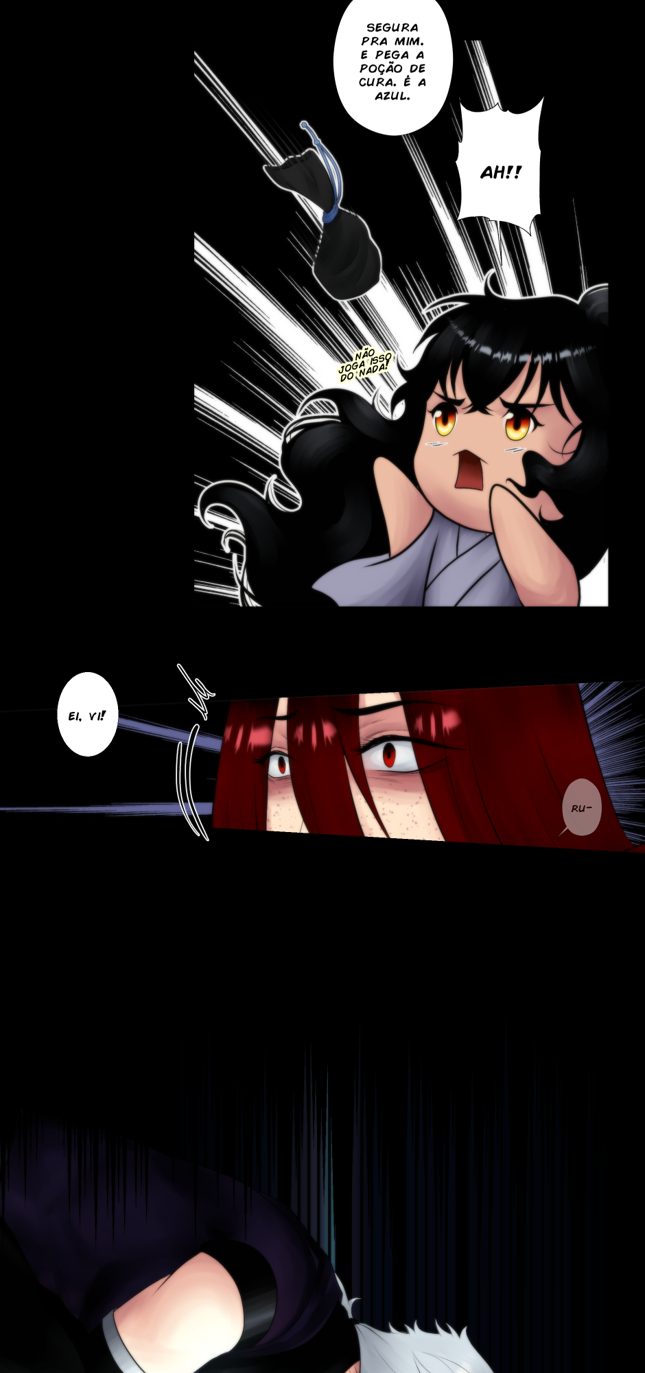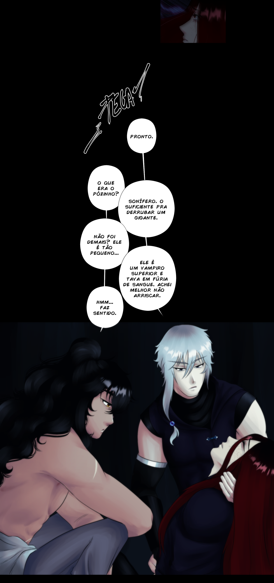 No canto, a cobra, o dragão e os ruivos observam incrédulos.