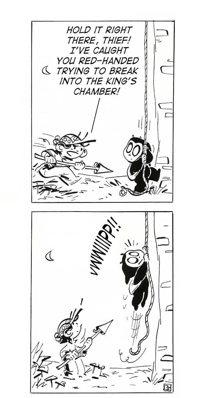 Hi Folks, This is a little comic strip of mine about nature spirits called “The Adventures of Windlewing” (otherwise known as “Sprites”). Follow the adventures of Windlewing as he works as a gate guard at the King’s Palace, roams the countryside with his best friend Boris, uses magic spells for protection against what was probably some benign sound of nature, and chases the sun. I hope you enjoy it, and please feel free to leave comments! I will post every few days (I have a day job). Cheers, MJoT