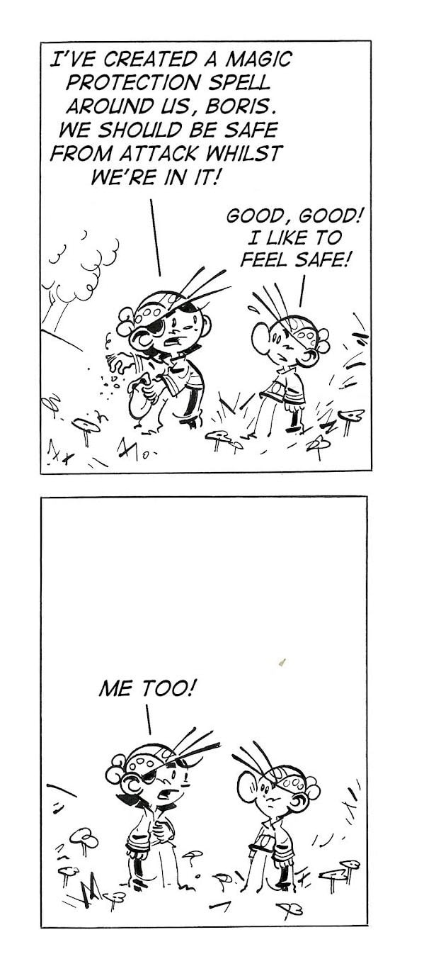 Hi Folks, This is a little comic strip of mine about nature spirits called “The Adventures of Windlewing” (otherwise known as “Sprites”). Follow the adventures of Windlewing as he works as a gate guard at the King’s Palace, roams the countryside with his best friend Boris, uses magic spells for protection against what was probably some benign sound of nature, and chases the sun. I hope you enjoy it, and please feel free to leave comments! I will post every few days (I have a day job). Cheers, MJoT