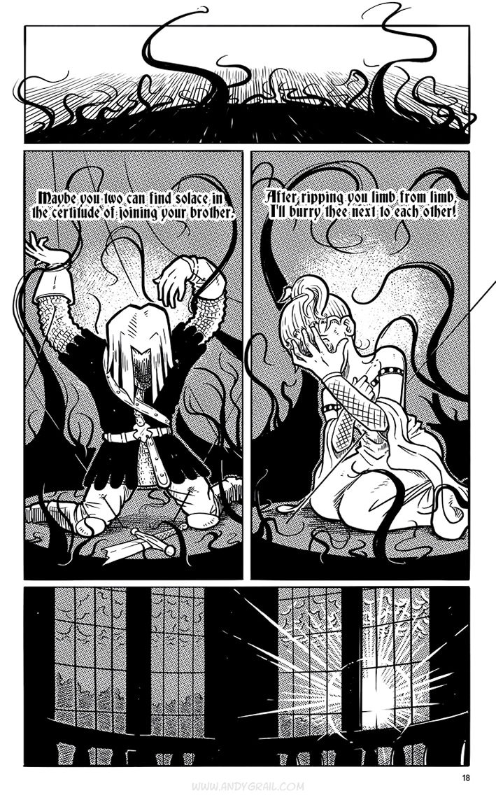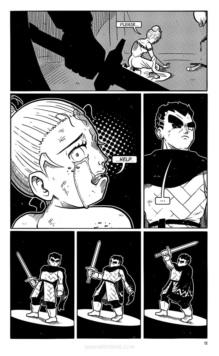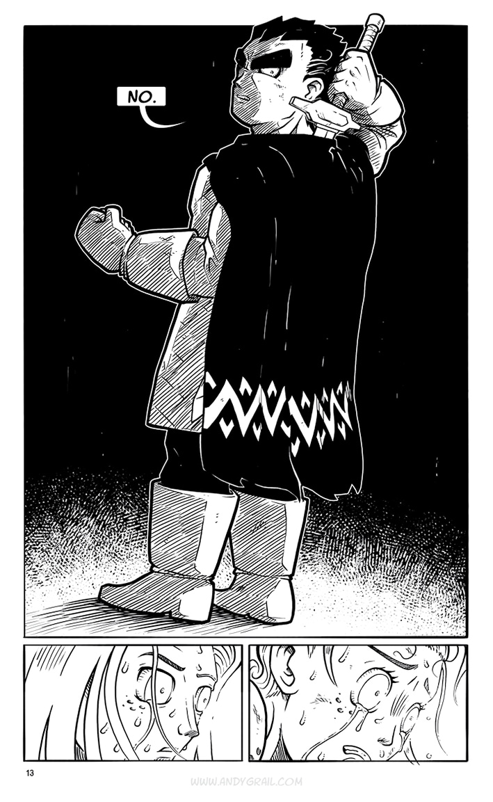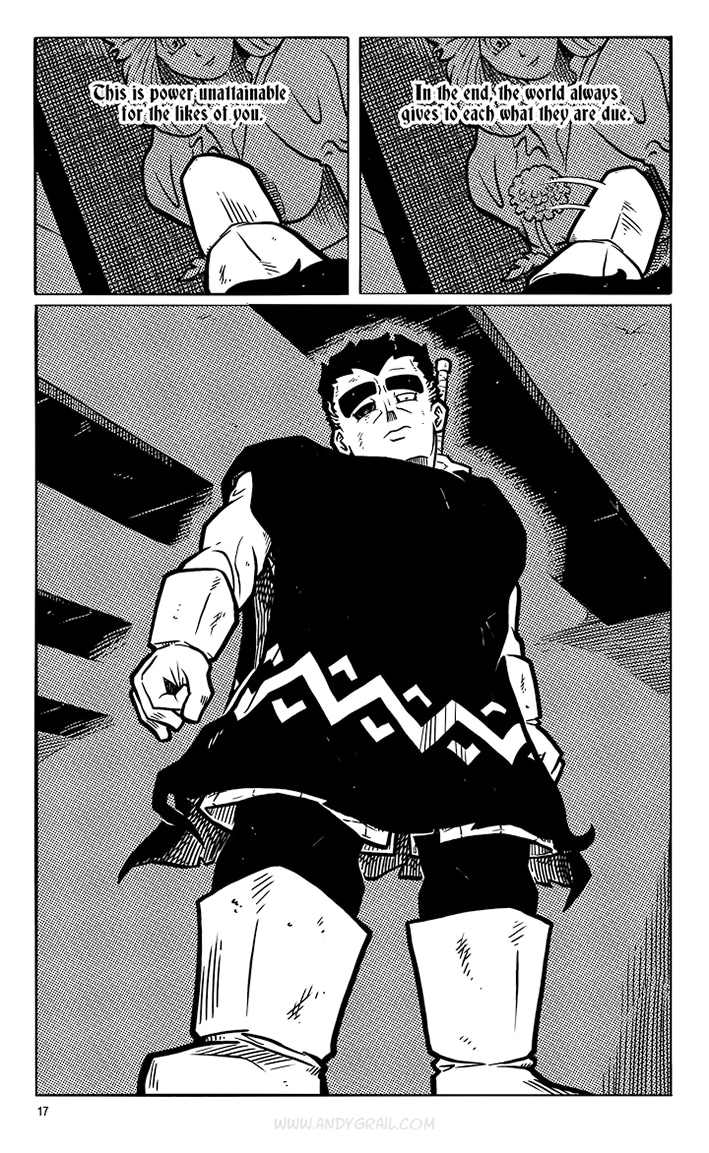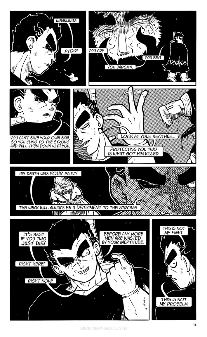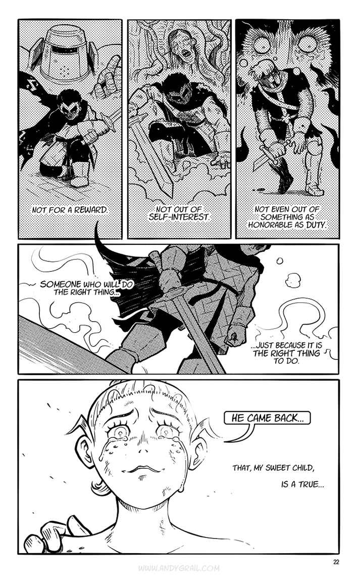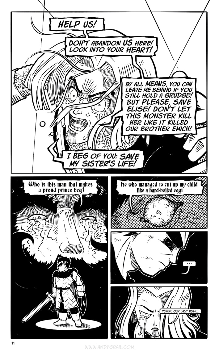 You don‘t need to know his name. The only thing that matters is his crusade, and if you stand in his way, he‘ll cut you down with his mighty sword. A sword called „Grimm“ that he claims can cut EVERYTHING. He‘s a lone Warrior on a journey with a distinct direction: North. That‘s where he‘s headed...