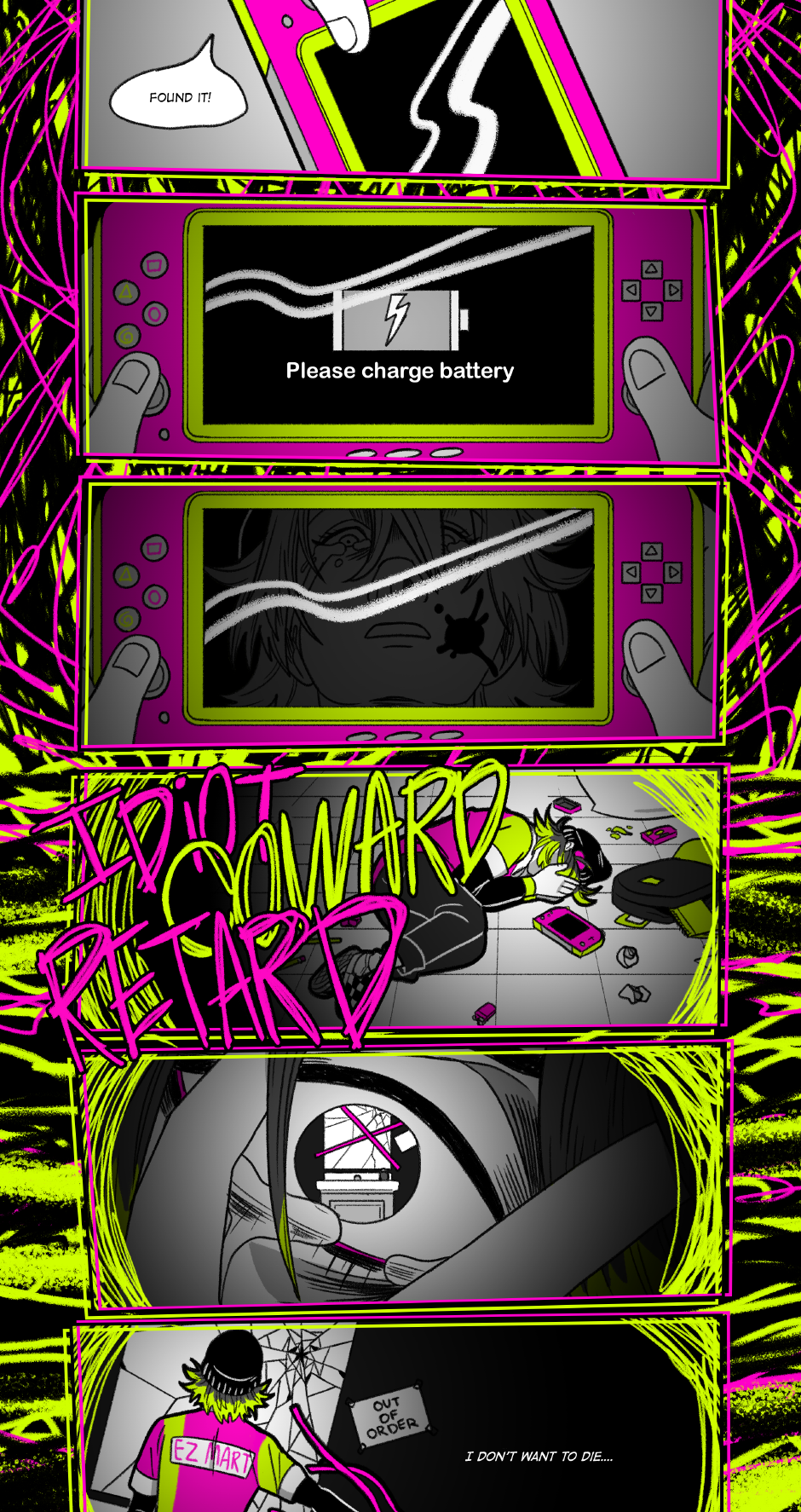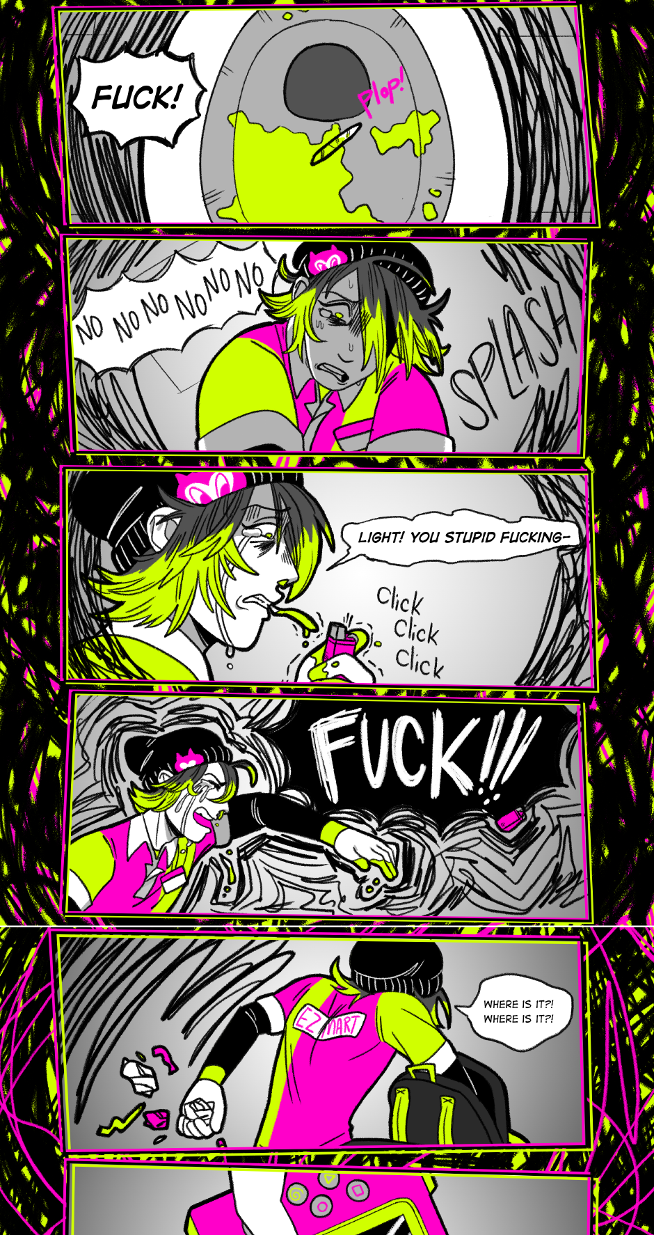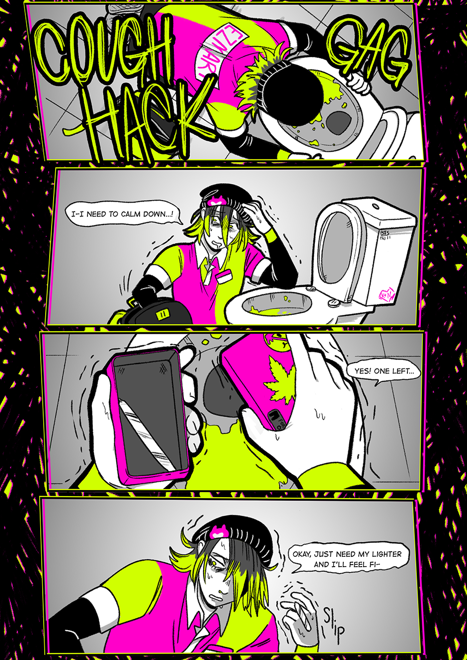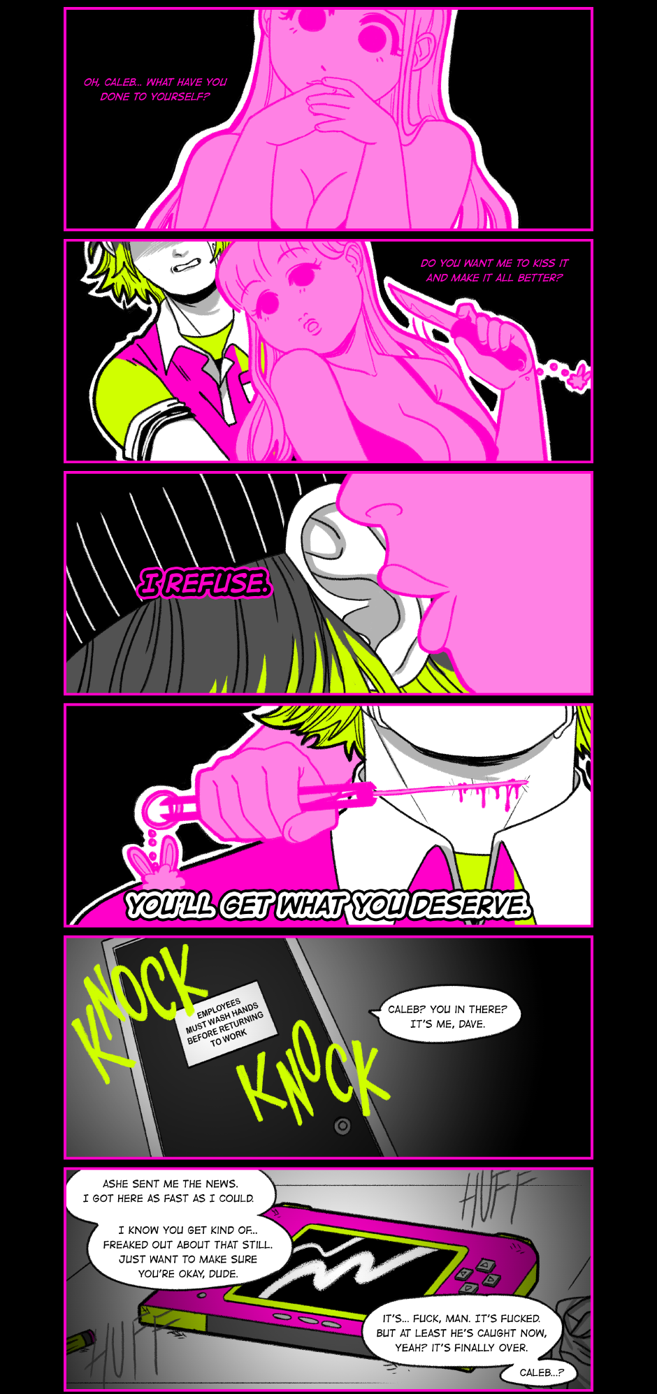 Big update this week because it felt wrong to separate this scene into multiple parts. Obviously, this is a very dark update, and I want to say I, as the author, DO NOT condone or endorse the characters' actions. This is a comic about specifically unhealthy and destructive coping mechanisms.