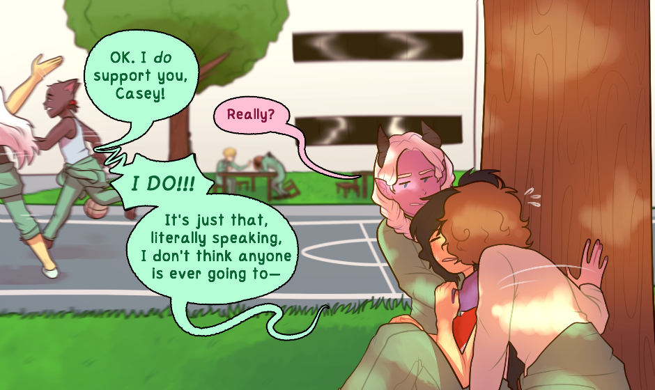 Nowhere Here is a story that's concept began to form/was published to Sudomemo on August 2, 2016. Picked up again on November 28, 2018, where the second version was published to Tapas.io on December 24, 2018, which was then pulled to a stop on July 7, 2019 because of unsatisfactory reasons. As of that date, Nowhere Here went under construction. And soon, on the 17th of September 2020, I started to draw out this final version of Nowhere Here. Publishing the first episode on Monday, June 21, 2021. Accidentally deleting it and then reuploading it on July 4, 2021.