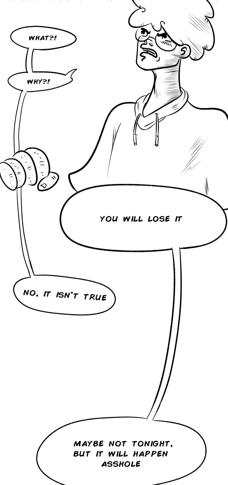 If you are too sensitive to ditrty language and strong scenes I do not recommend reading this comic, for everyone else welcome in the fantastic world of Jim and his random bullshit