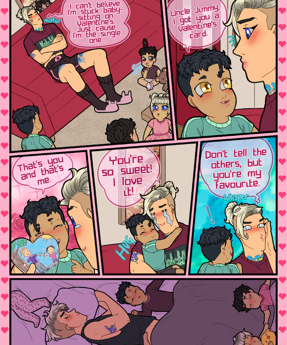 That's too many kids to babysit (꒪ȏ꒪;) I wouldn't even want to babysit one lmao. Jimmy is like the third parent to Clancy, especially when he's older. We will see more of that in the Joker is Me, which you can read here: