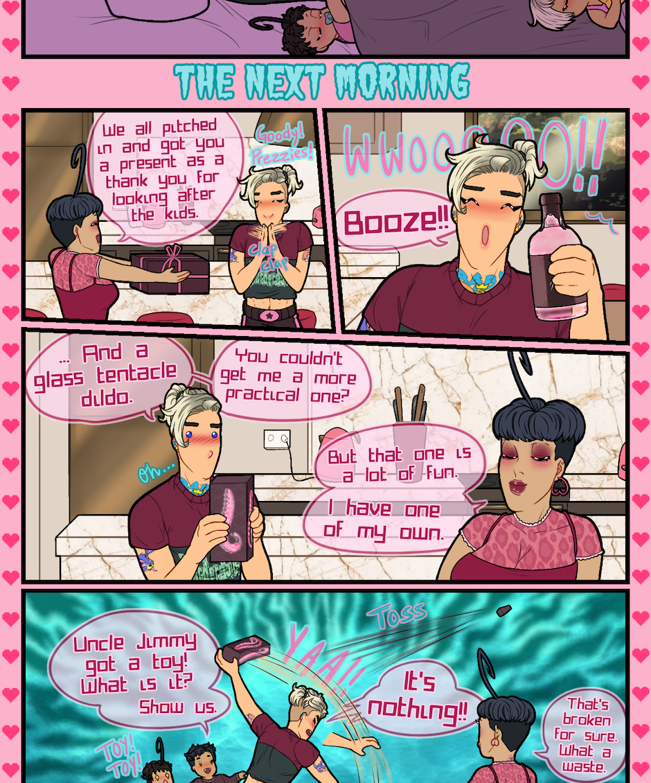 How could he babysit 5 BABIES AT THE SAME TIME ???? 😭😭😭😭😭 AND ALONE ????? 😭😭😭😭 at this point I consider it as cruelty to put him in this situation 😭😭 (I loooove those kind of dildos lol, I never would have thought that I’d find one like this in a webcomic 😂😂)