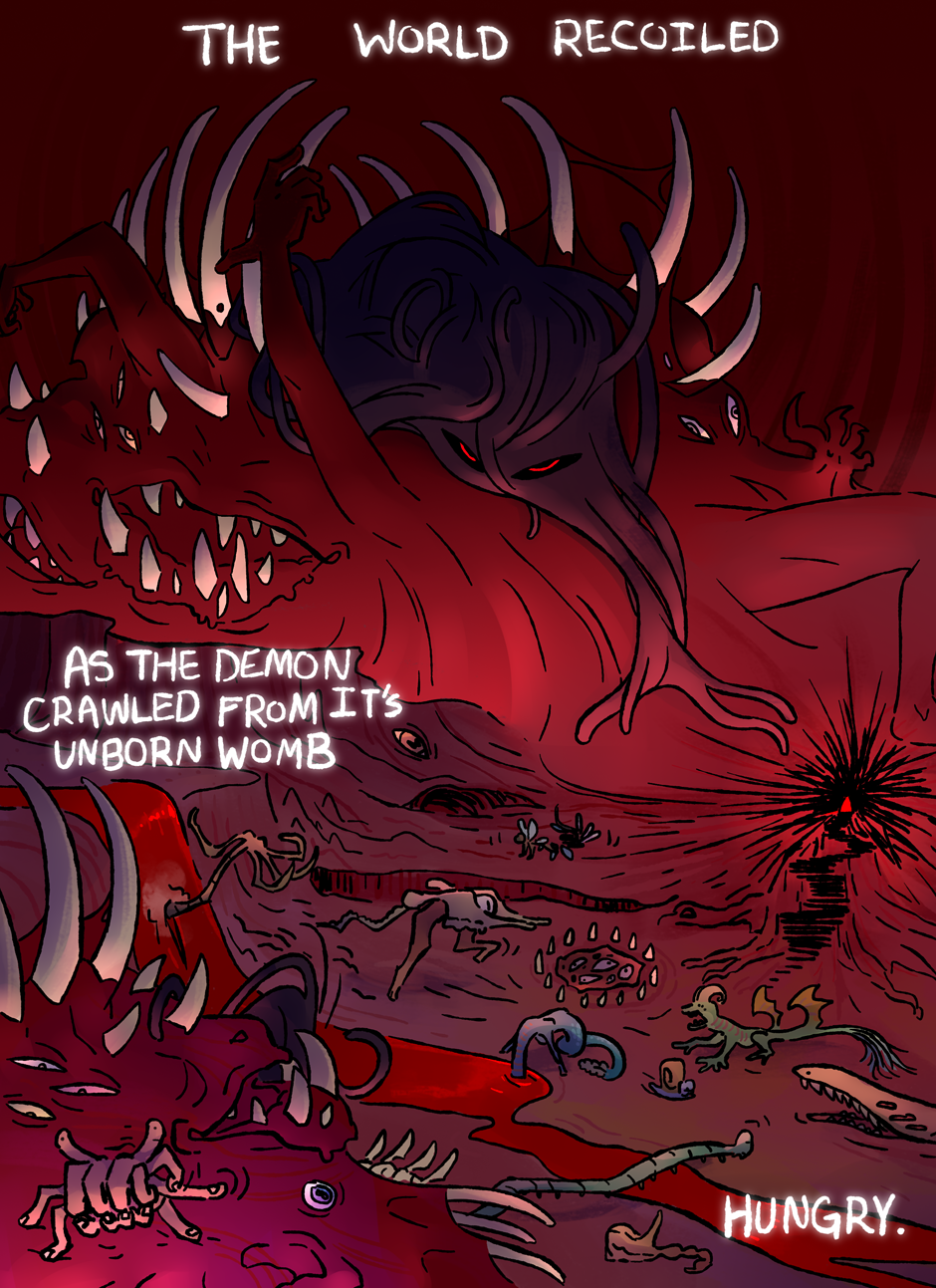 Gunna try soo hard to keep a vague update schedule. Giving myself the leeway of every two-three weeks? Slow and steady wins the race?? It's slower than i'd like in a perfect world, but also the world is hard and cold and my time for comic is small and desperate, so any posting is good posting! Thanks for checking out my comic, see you next update!