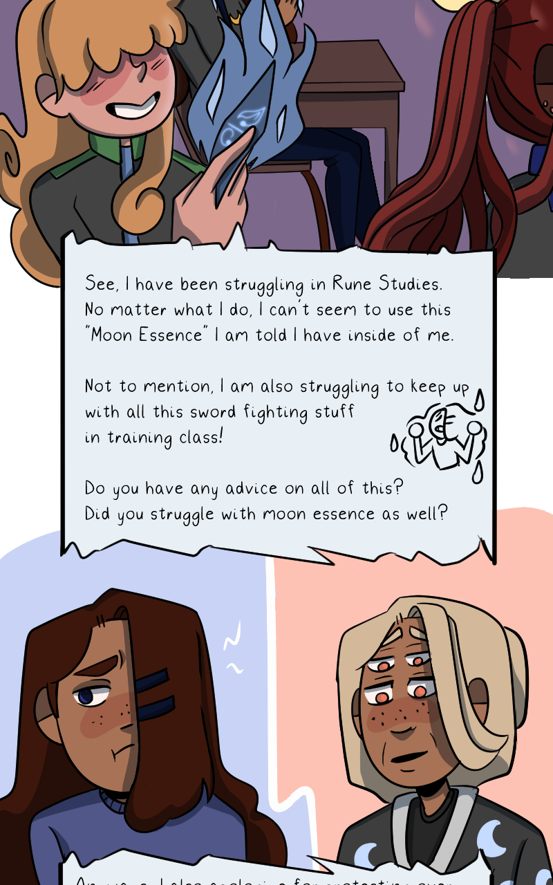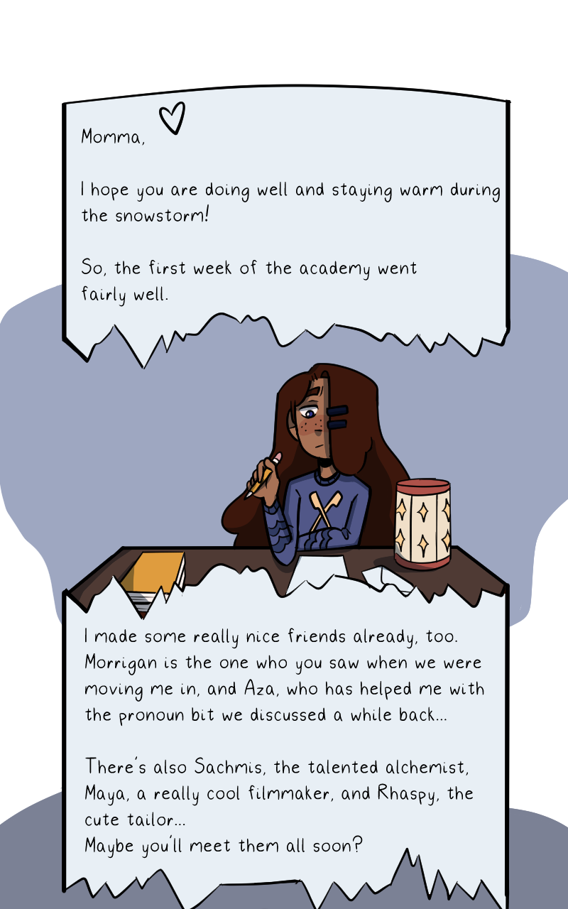 From within the fantastical fragmented worlds structured around ancient ruins and gender binary, Aster, born among the feminine society of Azurals, one day finds a boy in their mirror, resembling the masculine society of Infernians. Thus when Aster is soon compelled by their mother to attend the Azura Academy, they are faced with the most difficult decision yet: blend in and become someone they despise or transform into their own reflection and risk it all.