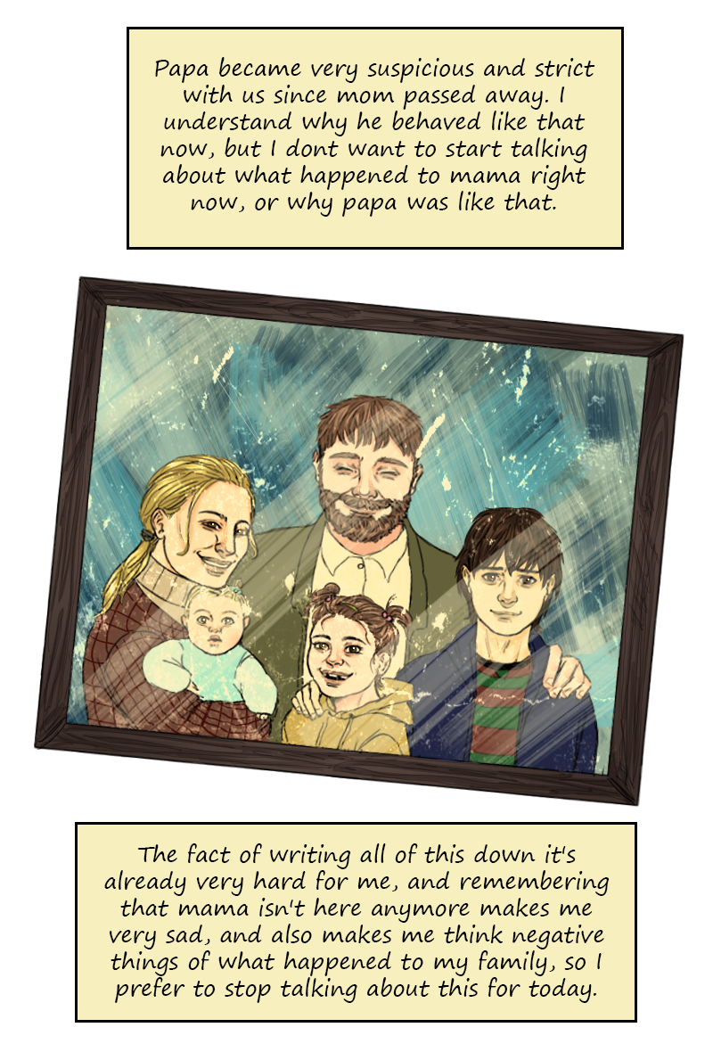 Samantha finally has a new diary where she can write. In its pages, it recapitulates many aspects of her life and personal tastes. In some of the entries we can discover how much she loves orchids, and, in other ones, we relive her most sordid memories and experiences, like that time she was snatched from her home and never returned.