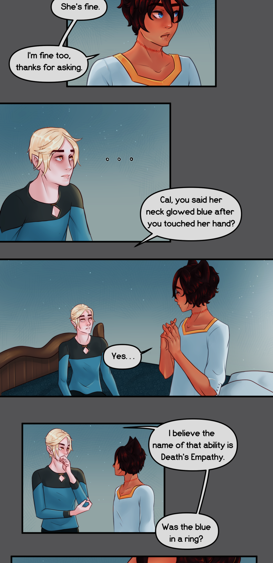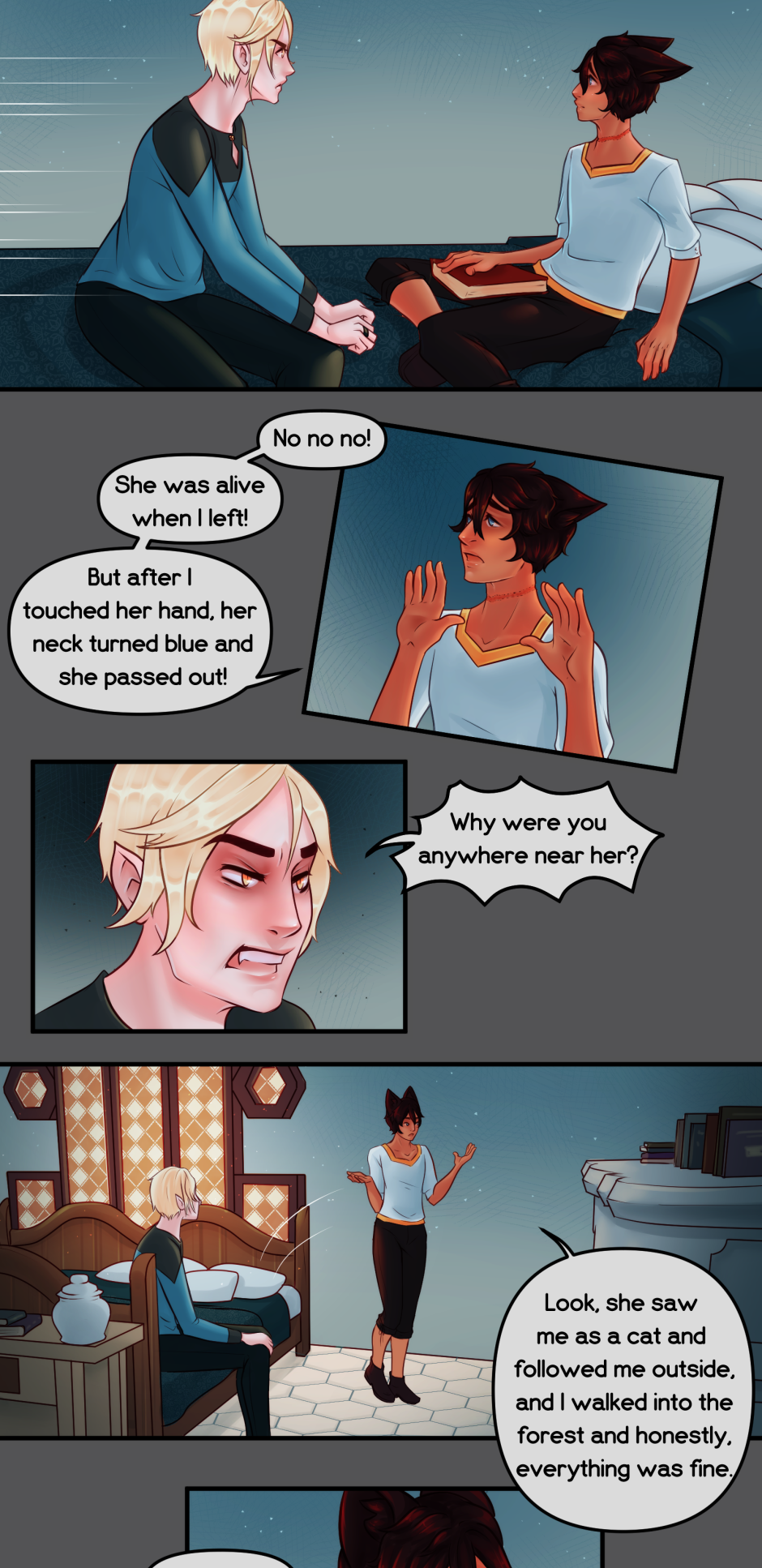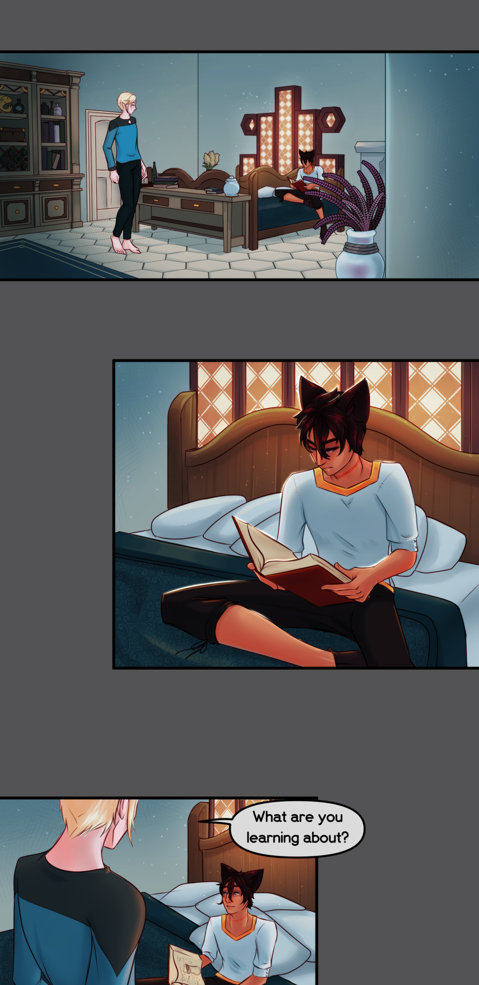 Woot 2 chapters down :D lol I need a little break now to build my buffer back up, I'll still be posting here and on Patreon. But yeah, any questions for the characters?
